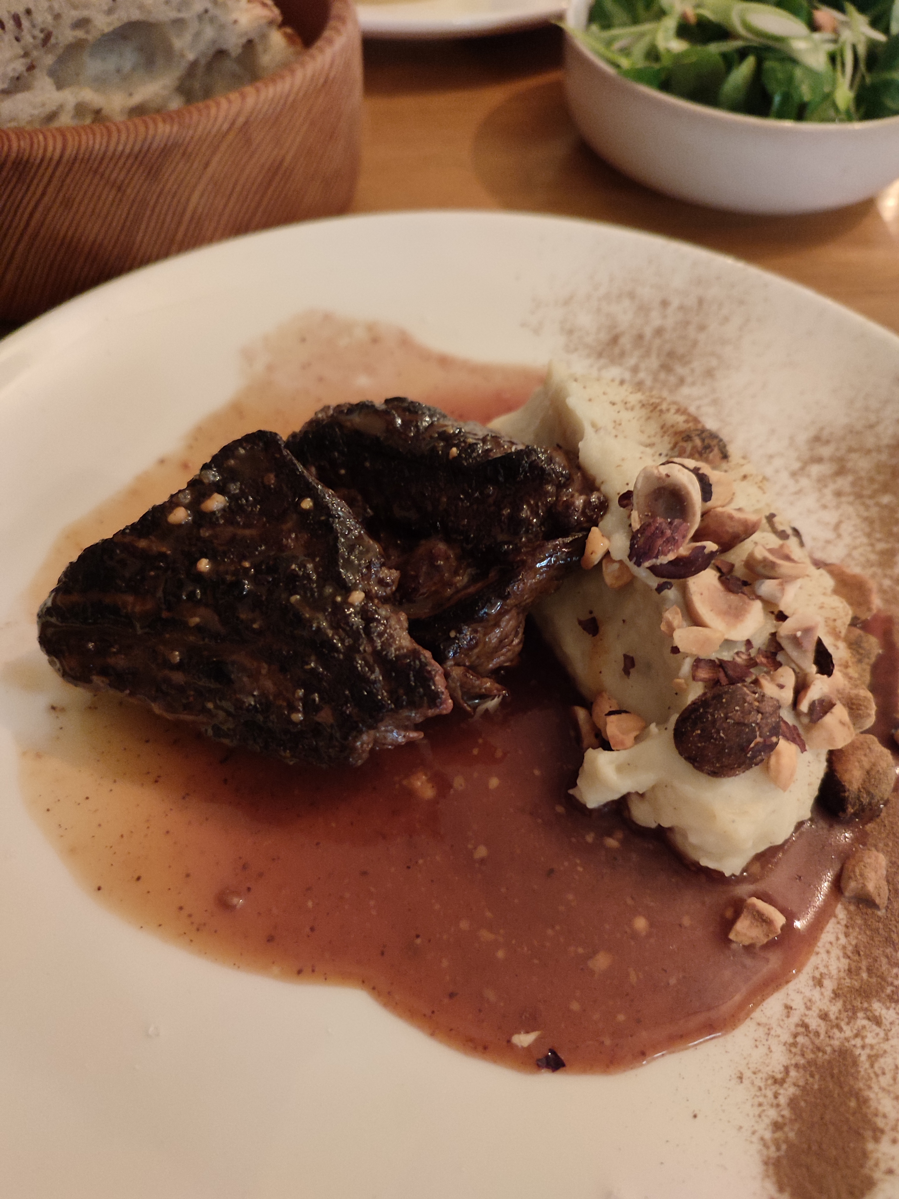 Je suis allé dîner avec des amies, le lieu est charmant et le personnel agréable. J’ai pris la pièces de bœuf avec frites et sauce bernaise mais la cuisson de la viande a été reprises 2 fois car trop saignante alors que demander à point , au 2 eme passage celle ci était trop suite est sèche , au prix j’estime qu’une maîtrise des cuisson serait appréciable pour garder sa saveur , sans parler que j’ai mangé en décalage de mes amies .