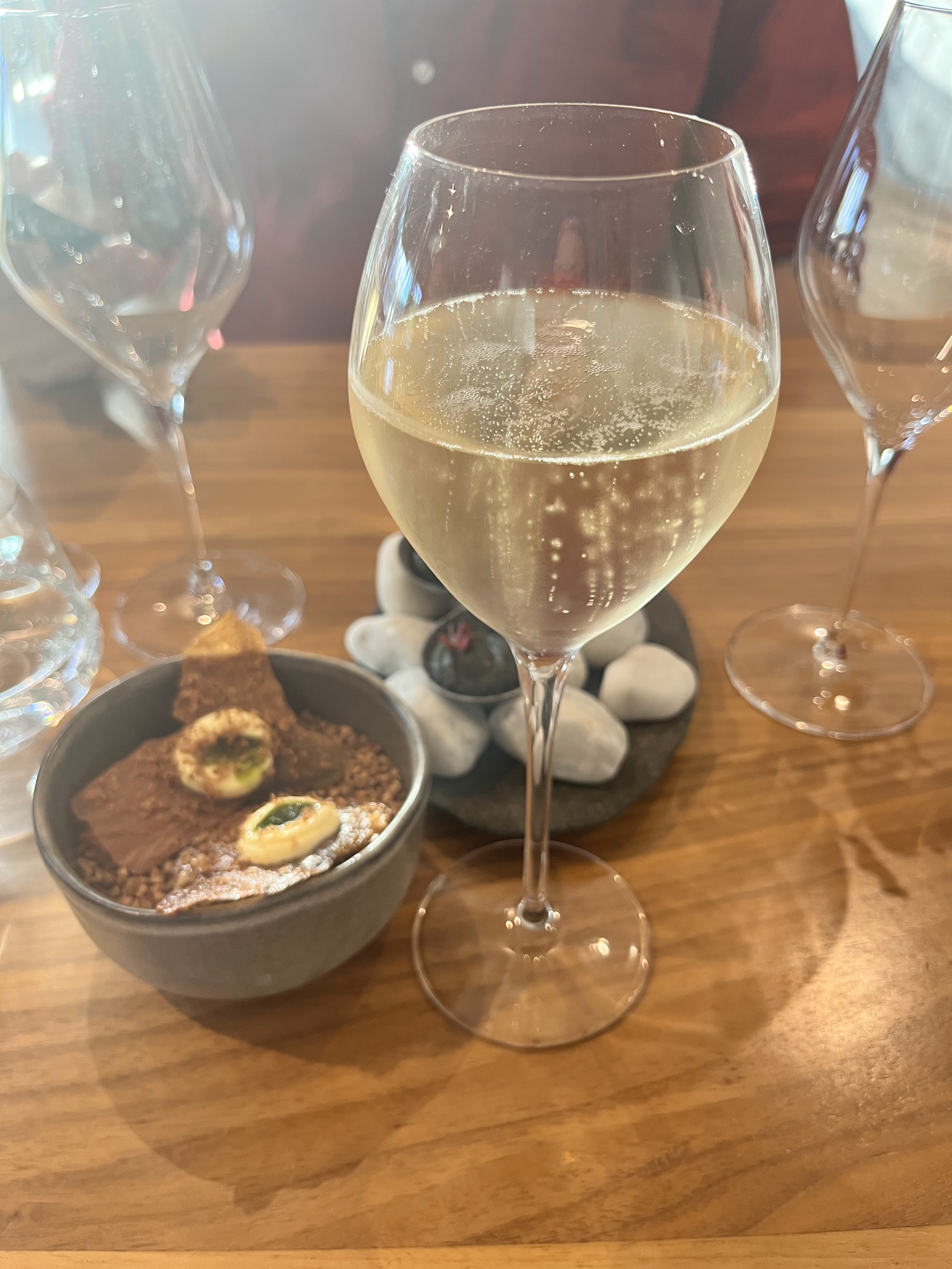 Menu minéral excellent ! De vraies prises de risque sur certains plats et c'est réussi. Le service est souriant et attentionné. Le dessert n'était pas au niveau espéré mais le café et les mignardises ont très largement compensé.
