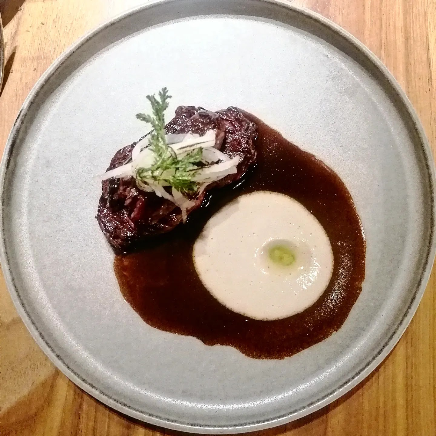cuisine remarquable , un peu compliquée , mais dans une ambiance trop sonore et manque d’intimité
