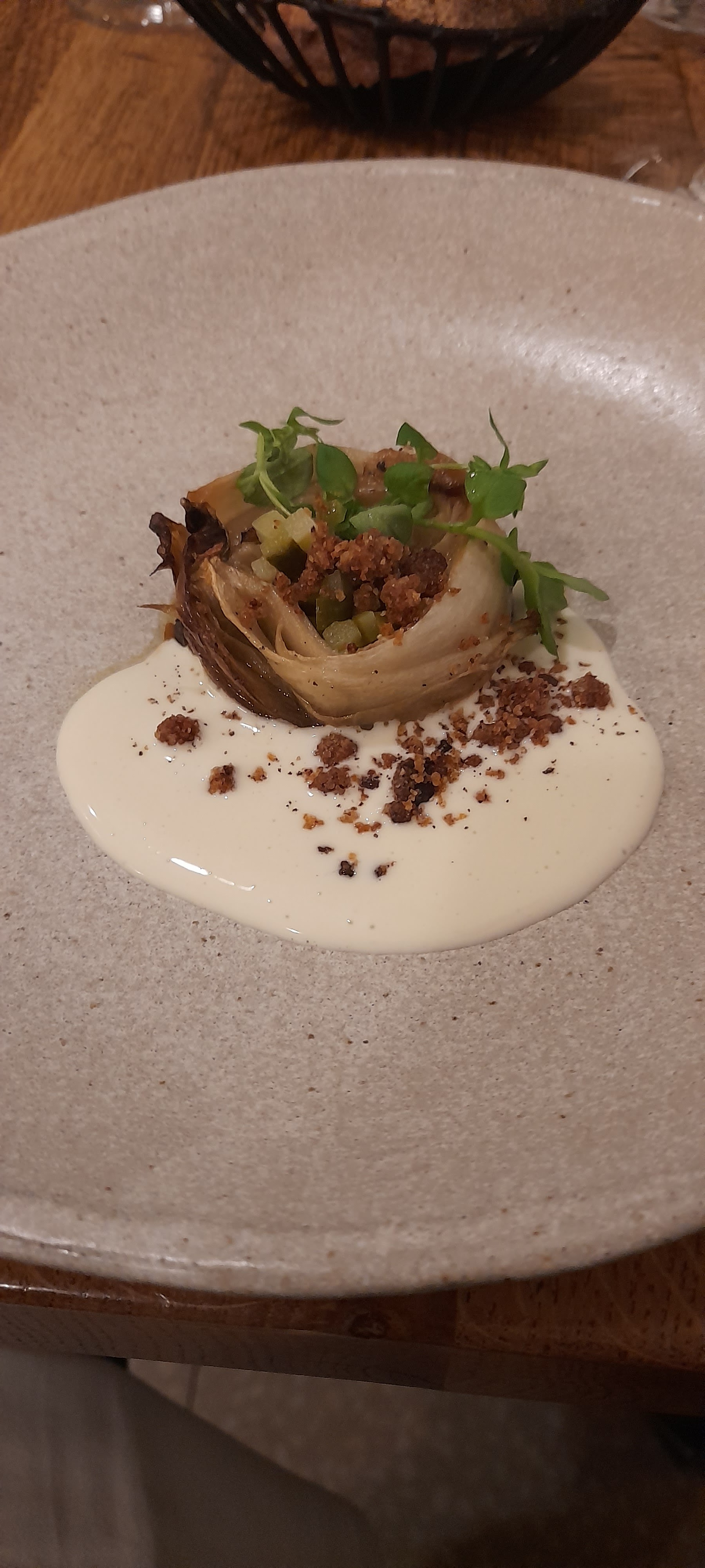 Une cuisine délicate, inventive et délicieuse ! Tout était parfait, de l'entrée à 5 temps (merci pour la petite blague) au dessert en passant par le vin aussi, à tomber. J'aime beaucoup lorsque le chef se prête au jeu du végétarisme sans mettre 3 cuillères de quinoa et deux brins de salade. Le travail autour de l'artichaut et du navet au top !!! Et pourtant, le navet ce n'est vraiment pas un légume facile. Et quelle équipe ! Nous avons adoré le concept découverte. Un merci aux chefs qui m'ont donné la référence de l'huile d'olive. Vous l'aurez compris, cette table est un vrai coup de coeur, nous y reviendrons c'est sûr.