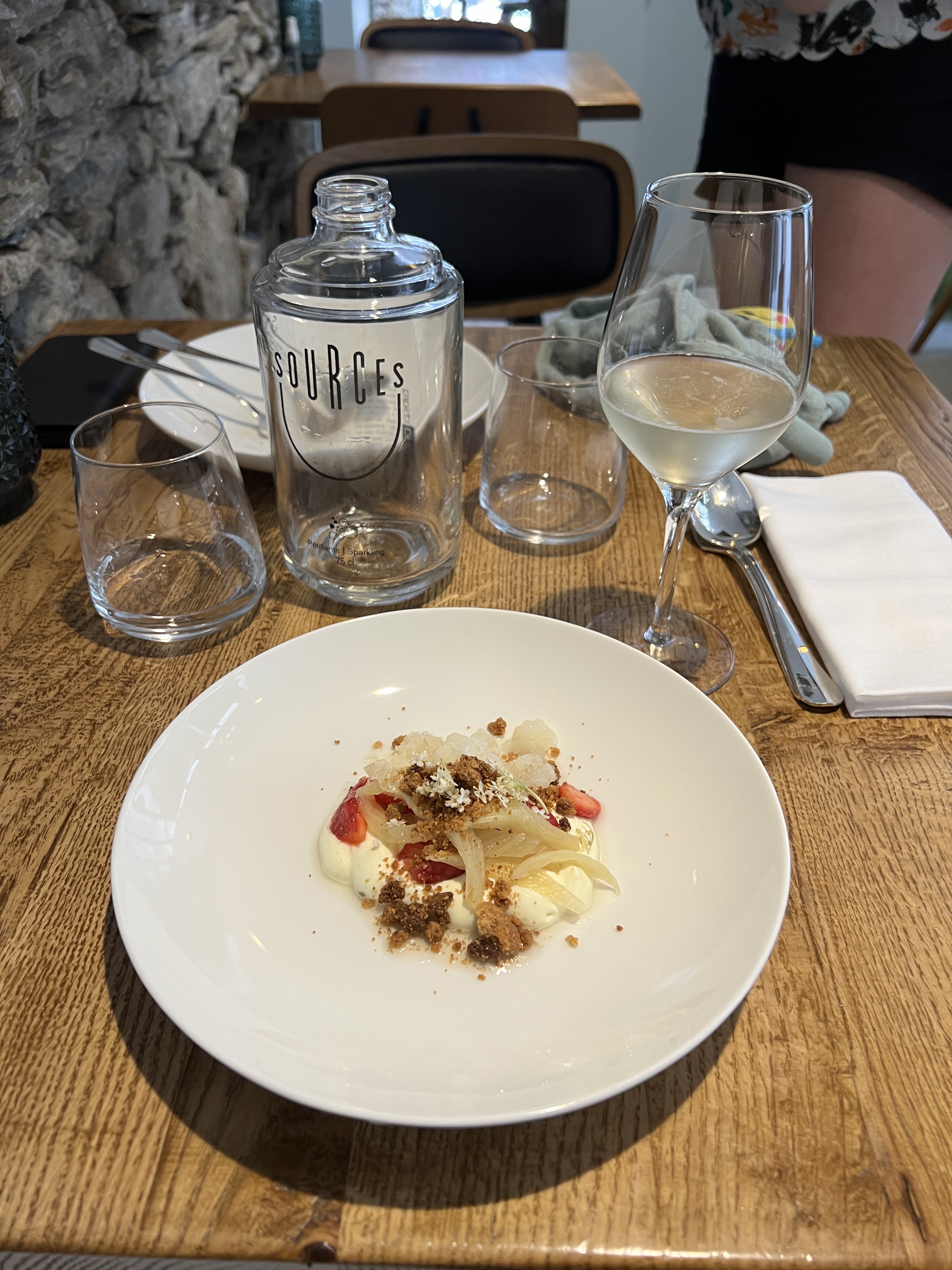 Superbe resto dans un cadre agréable , une cuisine inventive et délicieuse (on a envie de tout goûter) et un très bon service, bravo à l’équipe de Sources 👍