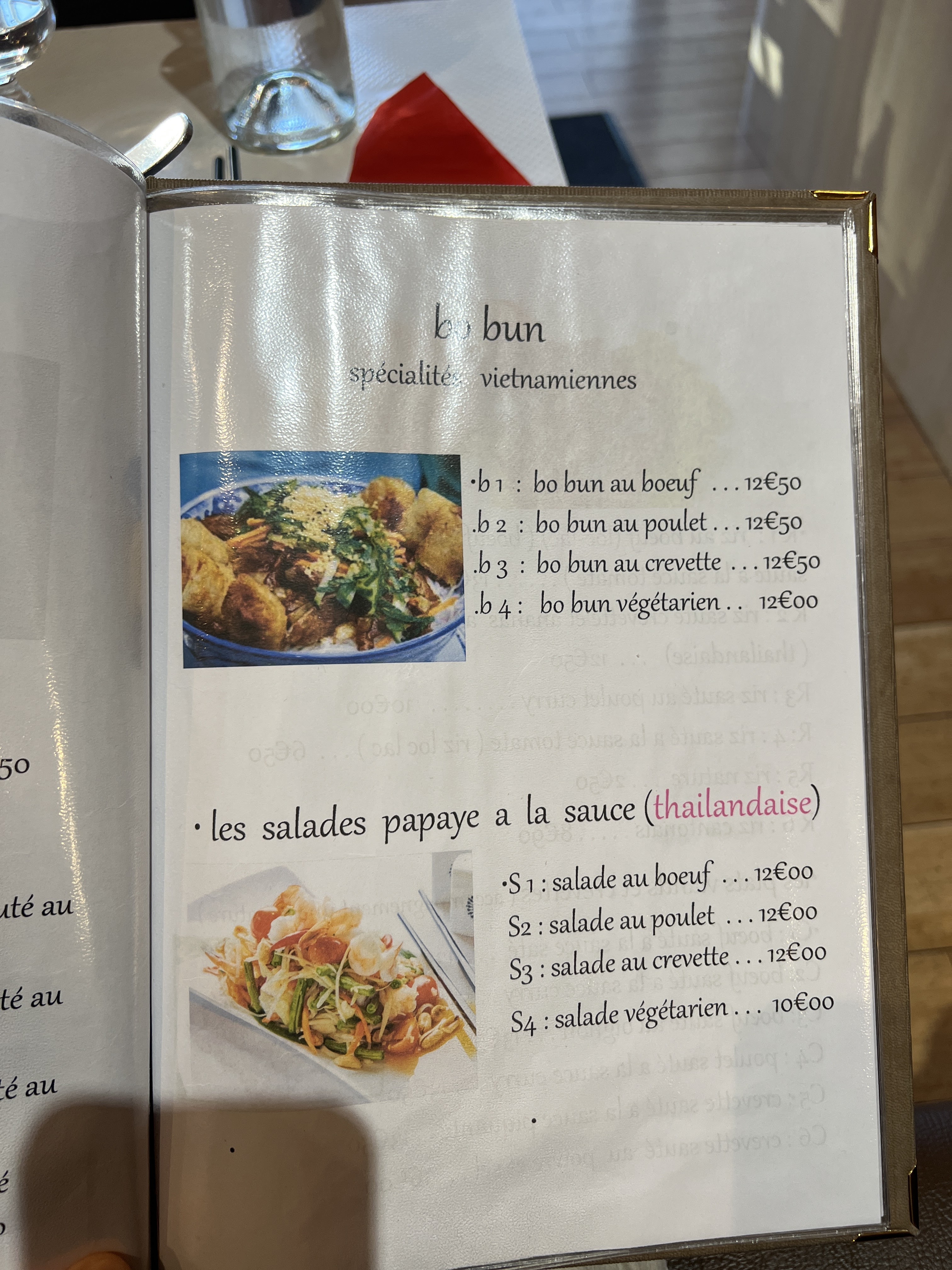 Tout est vraiment bien. J'ai pris un des plats typiquement vietnamiens, le Bobun au Beuf et les raviolis du Vietnam. Je l 'ai beaucoup aimé