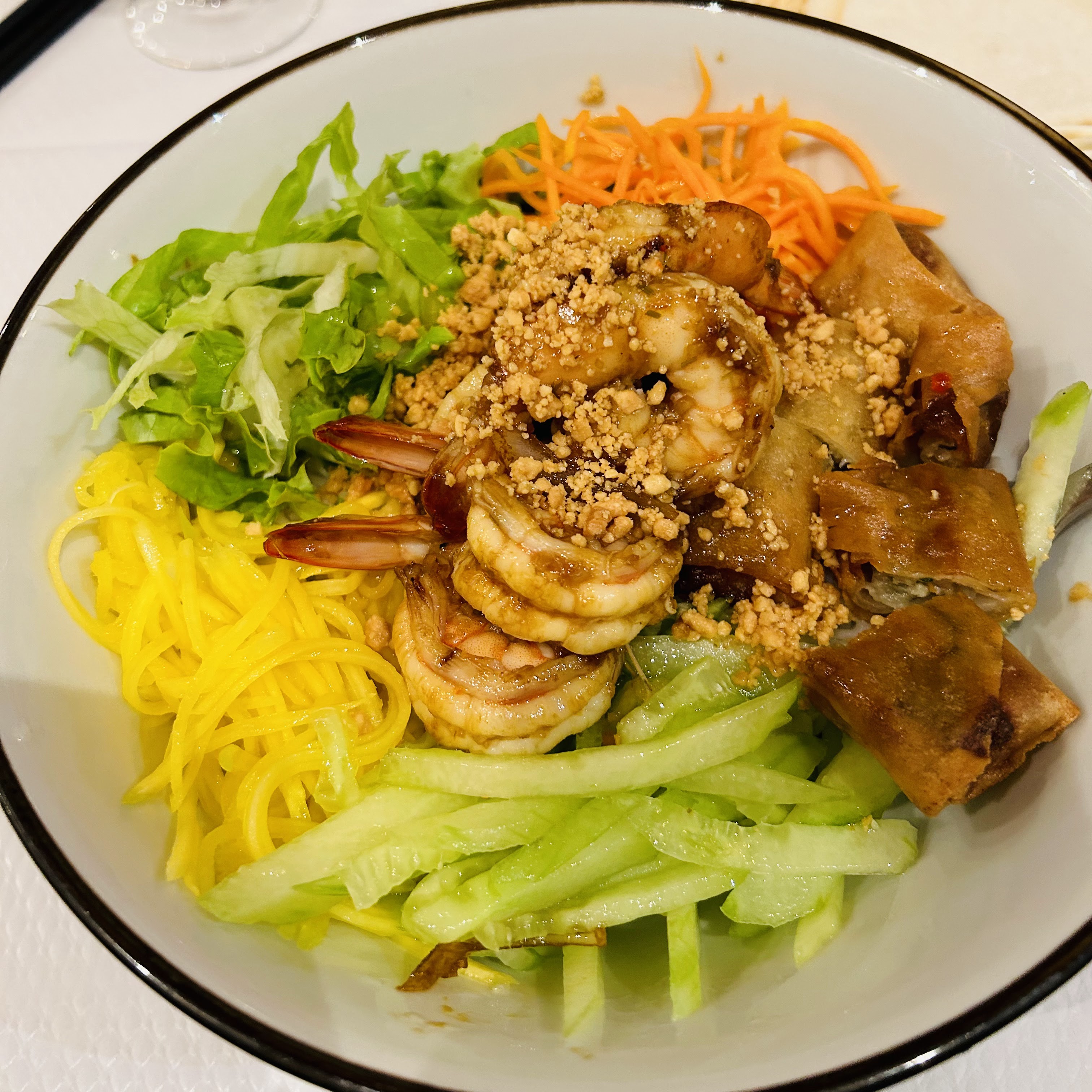 Les nems aux crevettes et le rouleau de riz vietnamien sont bons, mais le pho au bœuf est au mieux médiocre.