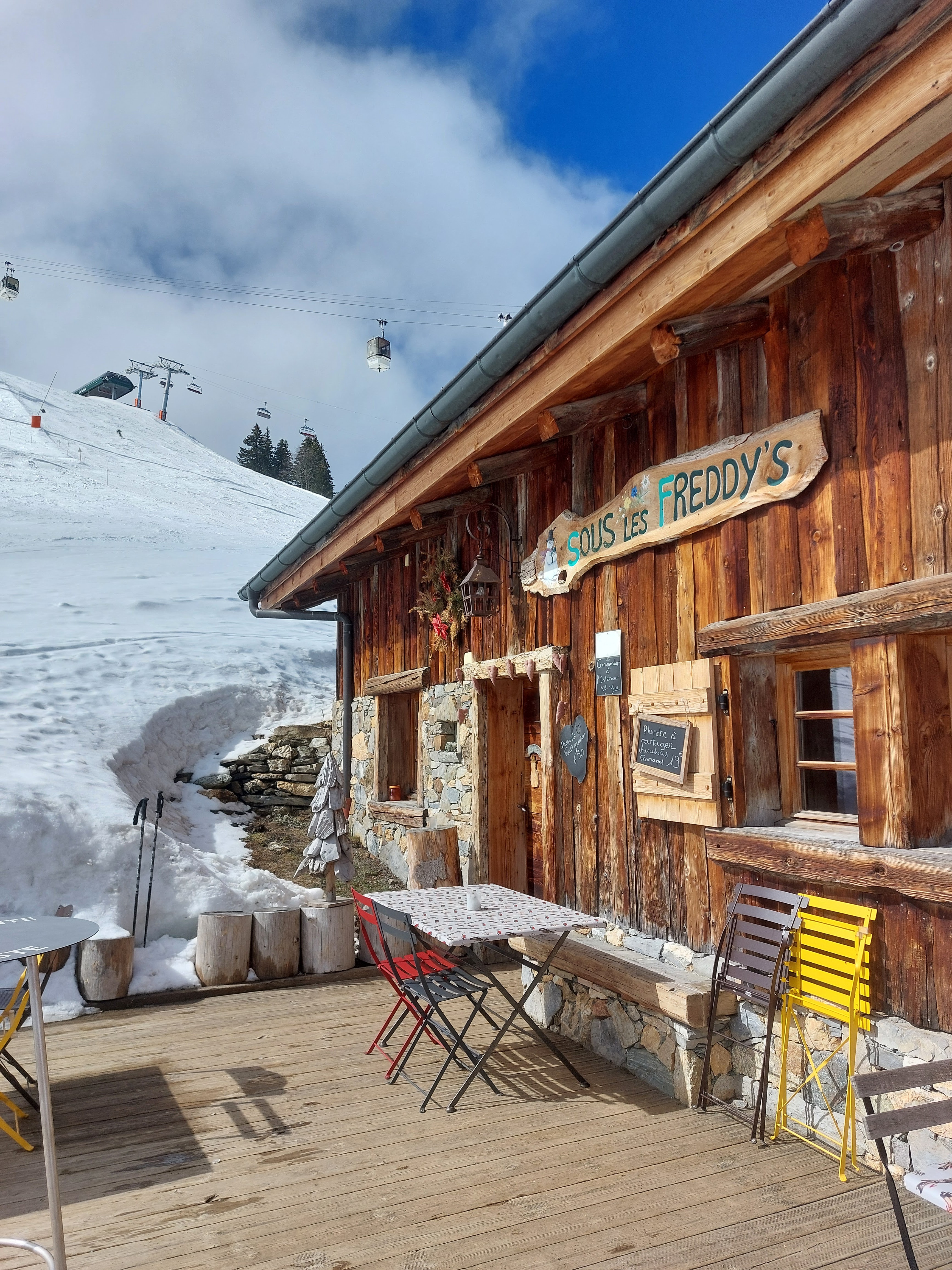 Super endroit pour s'asseoir à l'heure du déjeuner. Après une matinée de ski.