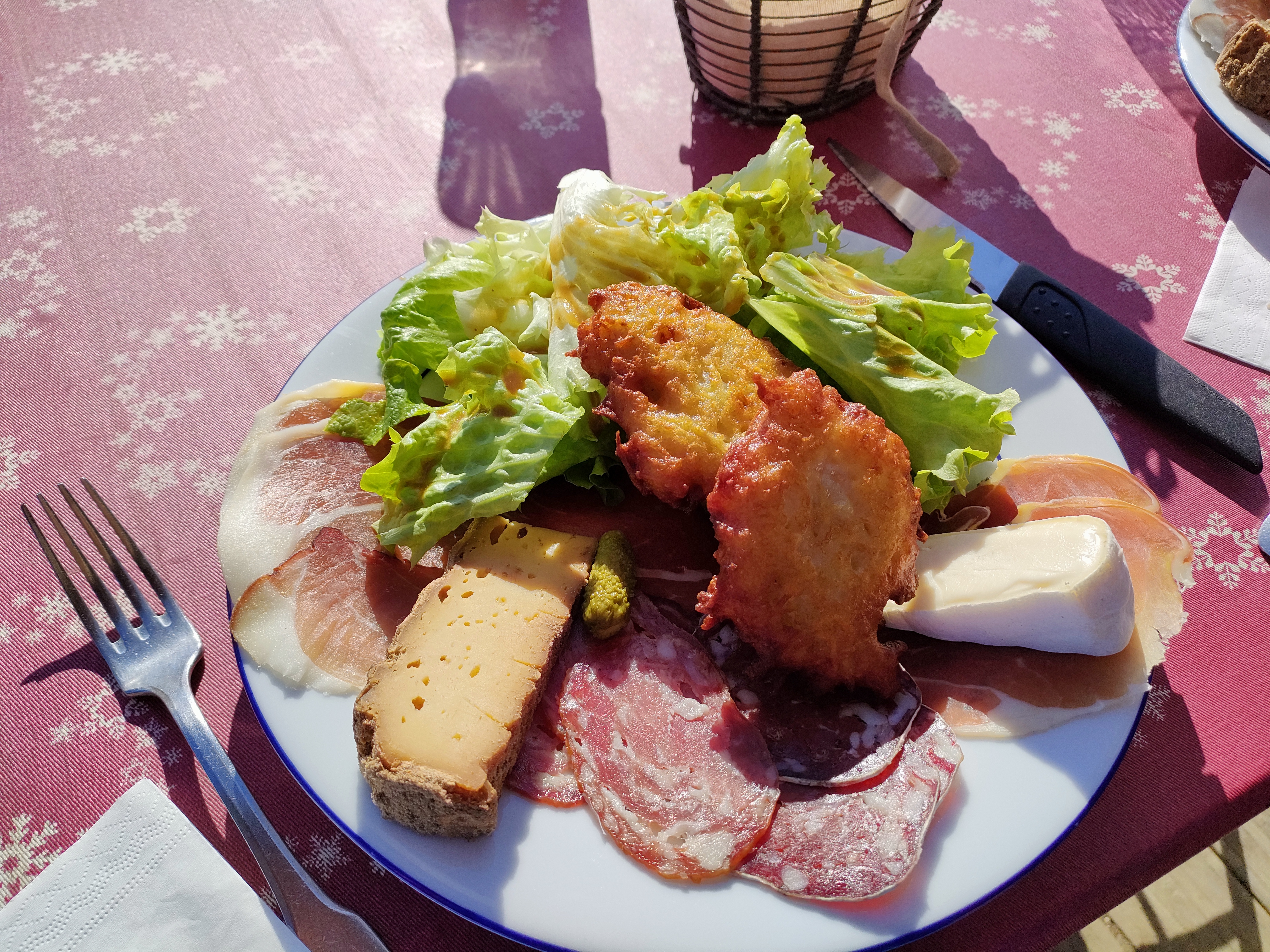 Les choses simples sont souvent les meilleures : c'est menu unique pour tout le monde à savoir assiette de charcuterie du pays, fromages et les fameux croustillants de pomme de terre. Pensez à réserver votre table car l'établissement ne peut pas recevoir beaucoup de monde et seuls les plus prévoyants auront leur place. Pour manger sur la terrasse pas de réservation c'est au p'tit bonheur la chance.