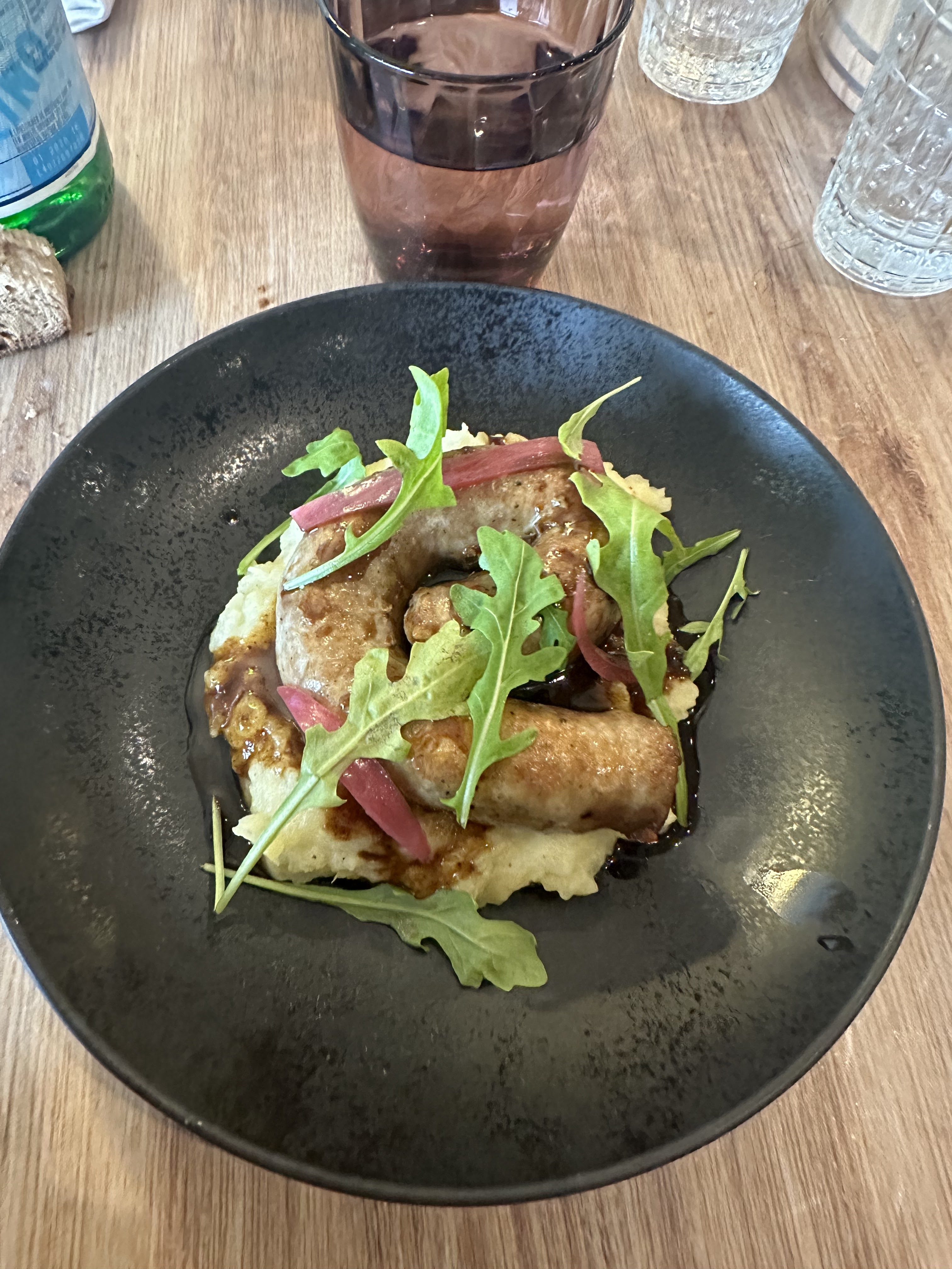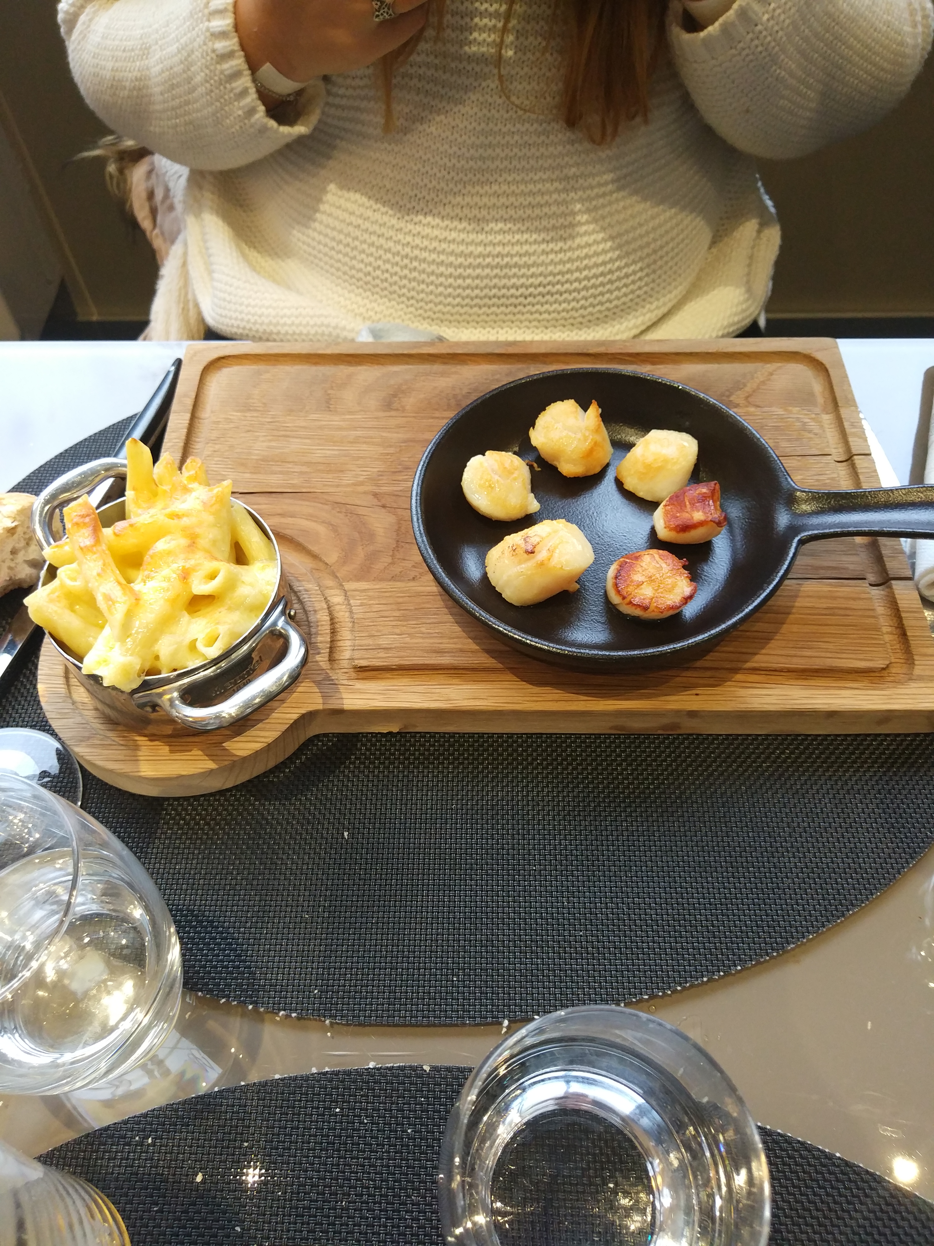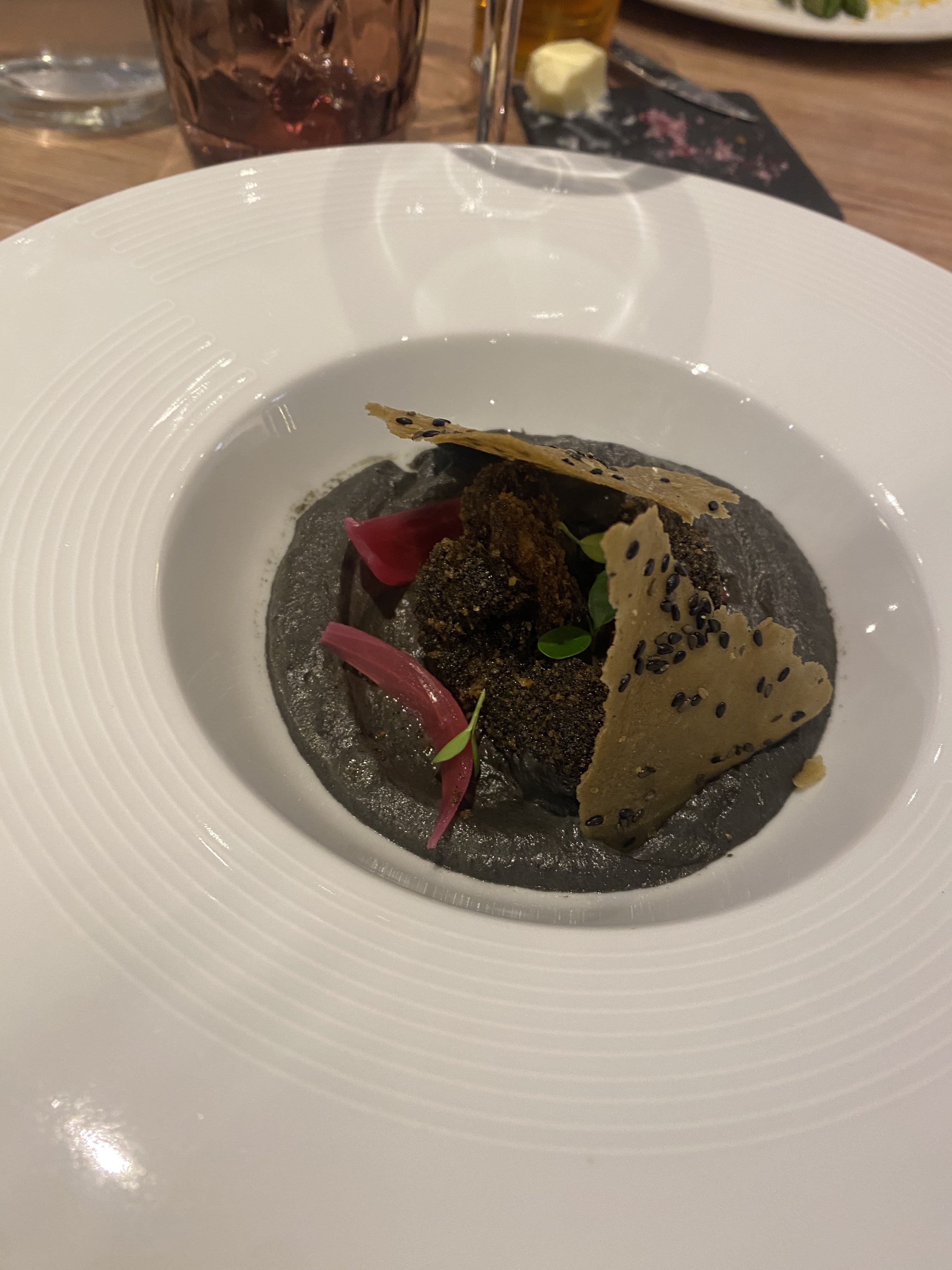 Nous avons fortement apprécié le lieu, l’équipe était également très à l’écoute et sympathique. Nous avions pris : - un cocktail sans alcool avec de la ginger beer. - une bière IPA - entrée : croustillant de risotto, aubergines chinoise, piquillos - entrée : rillettes de poulet et glace à la moutarde à l’ancienne (entre du jour) - plat : cabillaud rôti, mousseline de panais, chips de sésame et sauce vierge aux algues - plat : araignée de veau, sauce au miel et légumes. Tout était très bon, j’ai adoré la mousseline de panais et le côté rôti sur le cabillaud était très appréciable. Nous vous recommandons fortement l’araignée de veau qui était excellente.