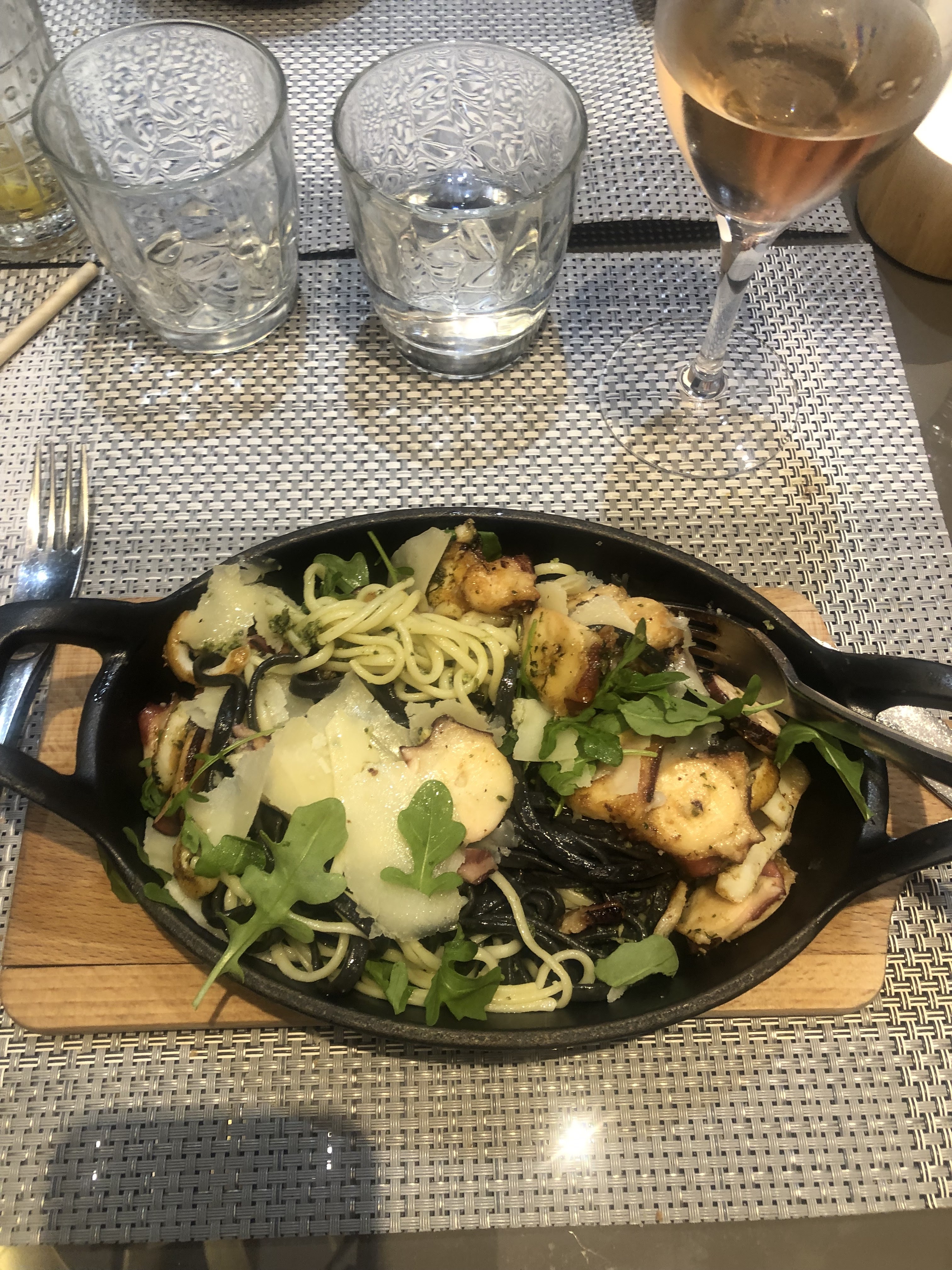 Service agréable et compétent mais cuisine pas top, magret froid et renvoyé à la cuisine du coup pour finir immangeable... De la semelle. Et penne au palourdes. .. On cherche encore les palourdes. Quant à la salade Caesar c est comme Mac do sans la sauce et avec un peu plus de quantité. Déçue