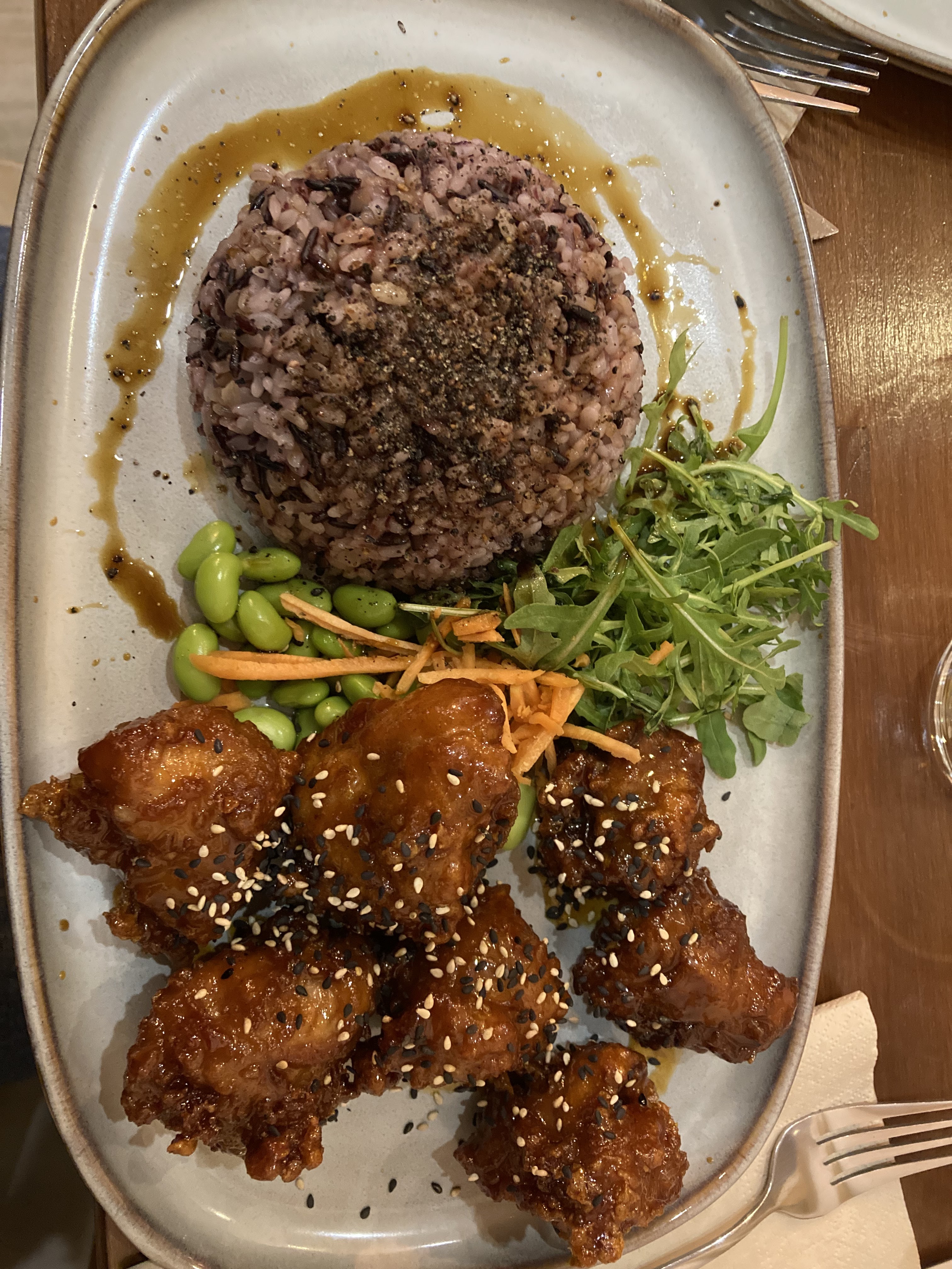 J’ai pris à emporter le poulet caramélisé à la coréenne et le karaage, c’était parfait! Je recommande!