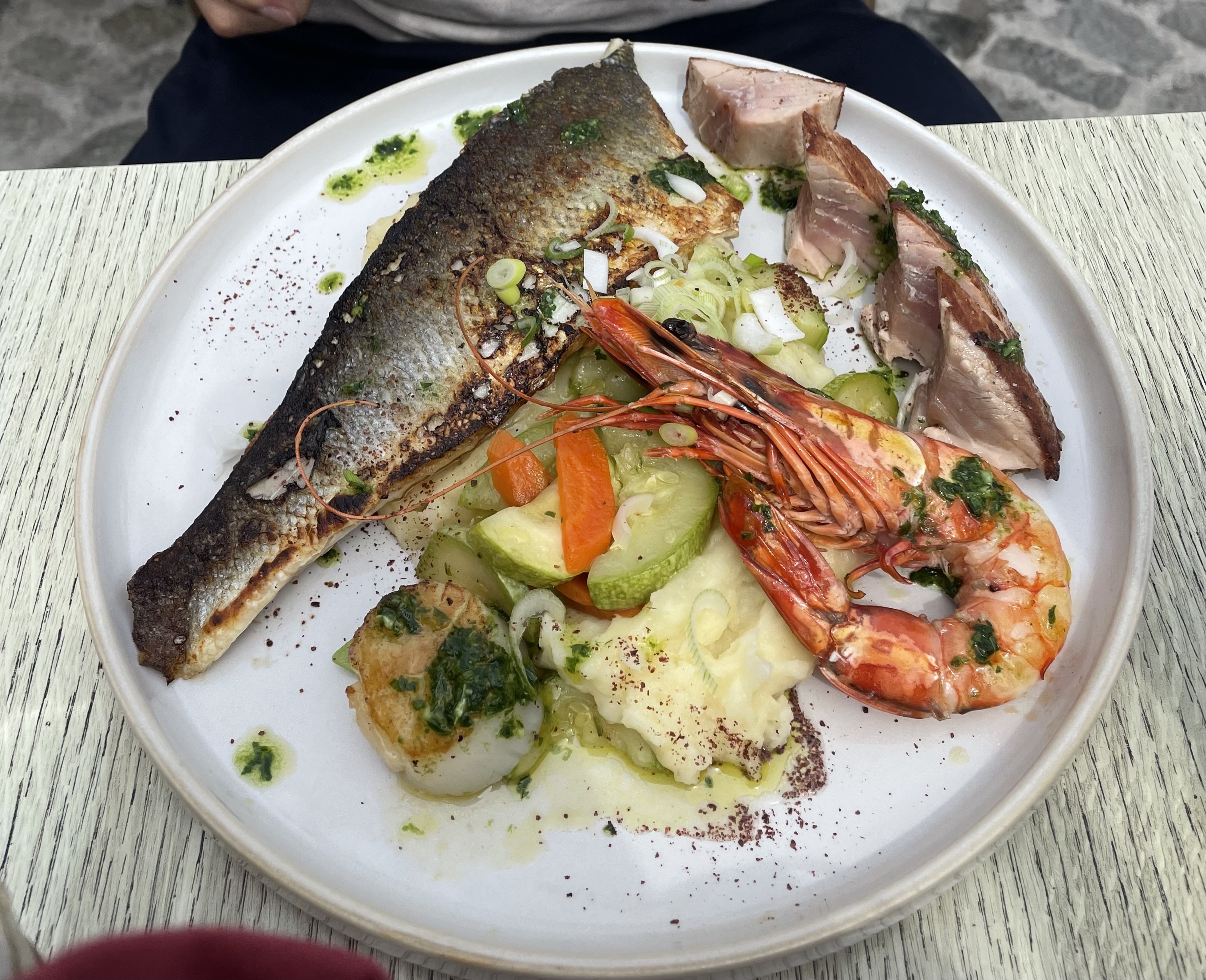 Plat assiette de fruit de mer 32 euros, pas grand chose, froid, fade. Je n'y retournerai plus.