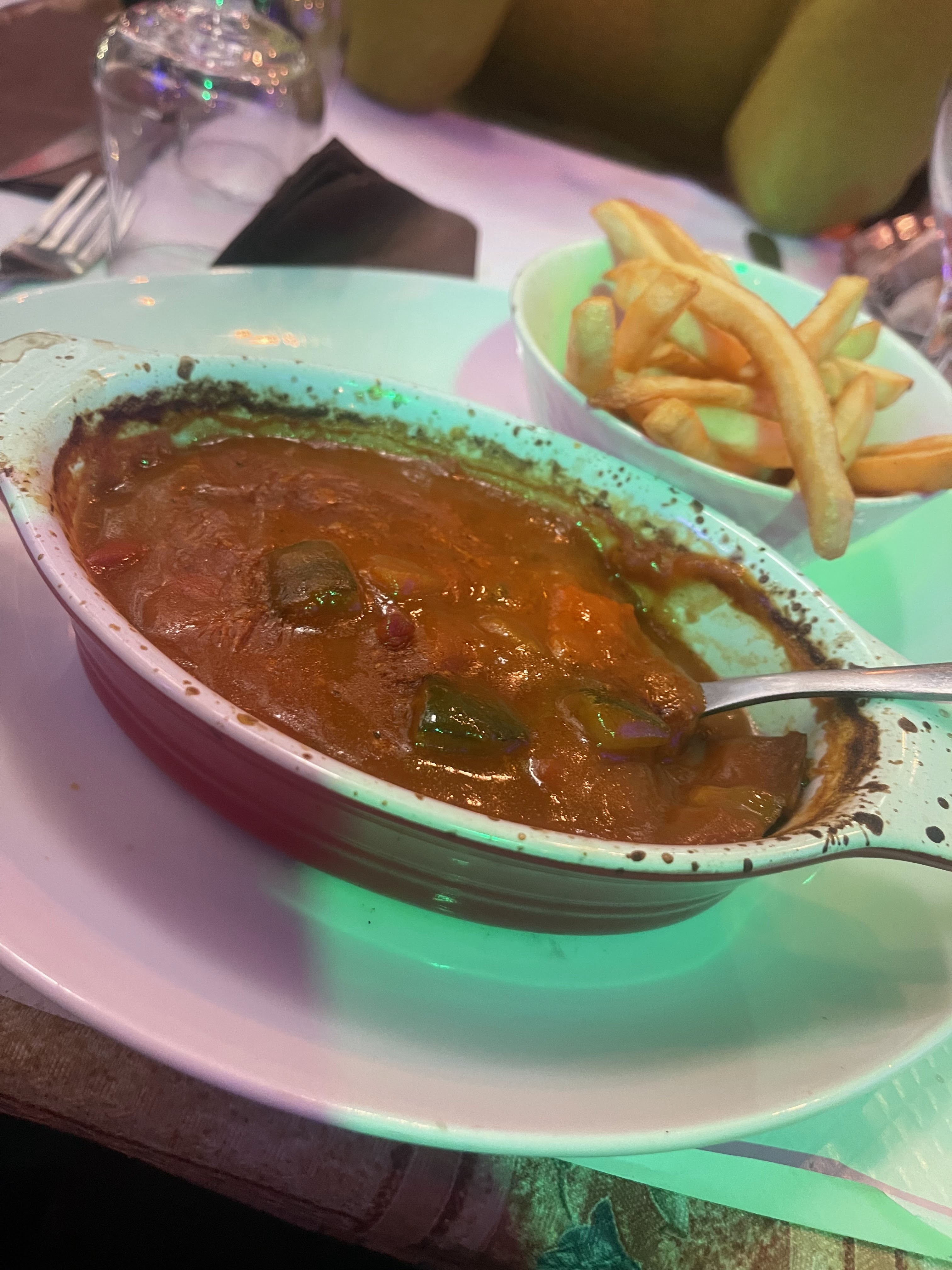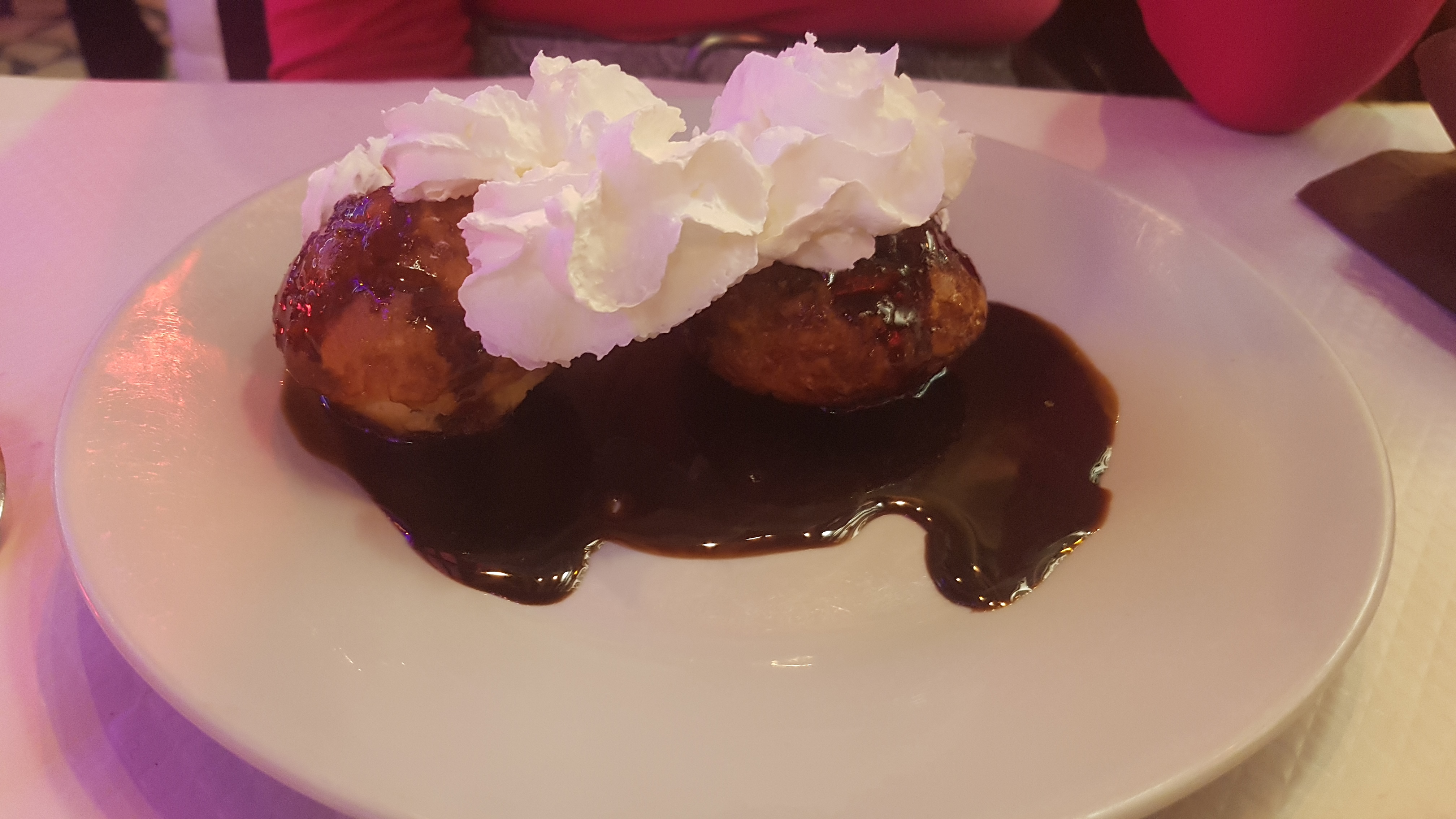 La pire nourriture que j'ai eu à Paris. Profiteroles glacés et fausse sauce chocolat à la crème en conserve ! Le bœuf bourguignon, la viande était dure, donc déçu, j'aurais aimé regarder les critiques avant de m'asseoir.