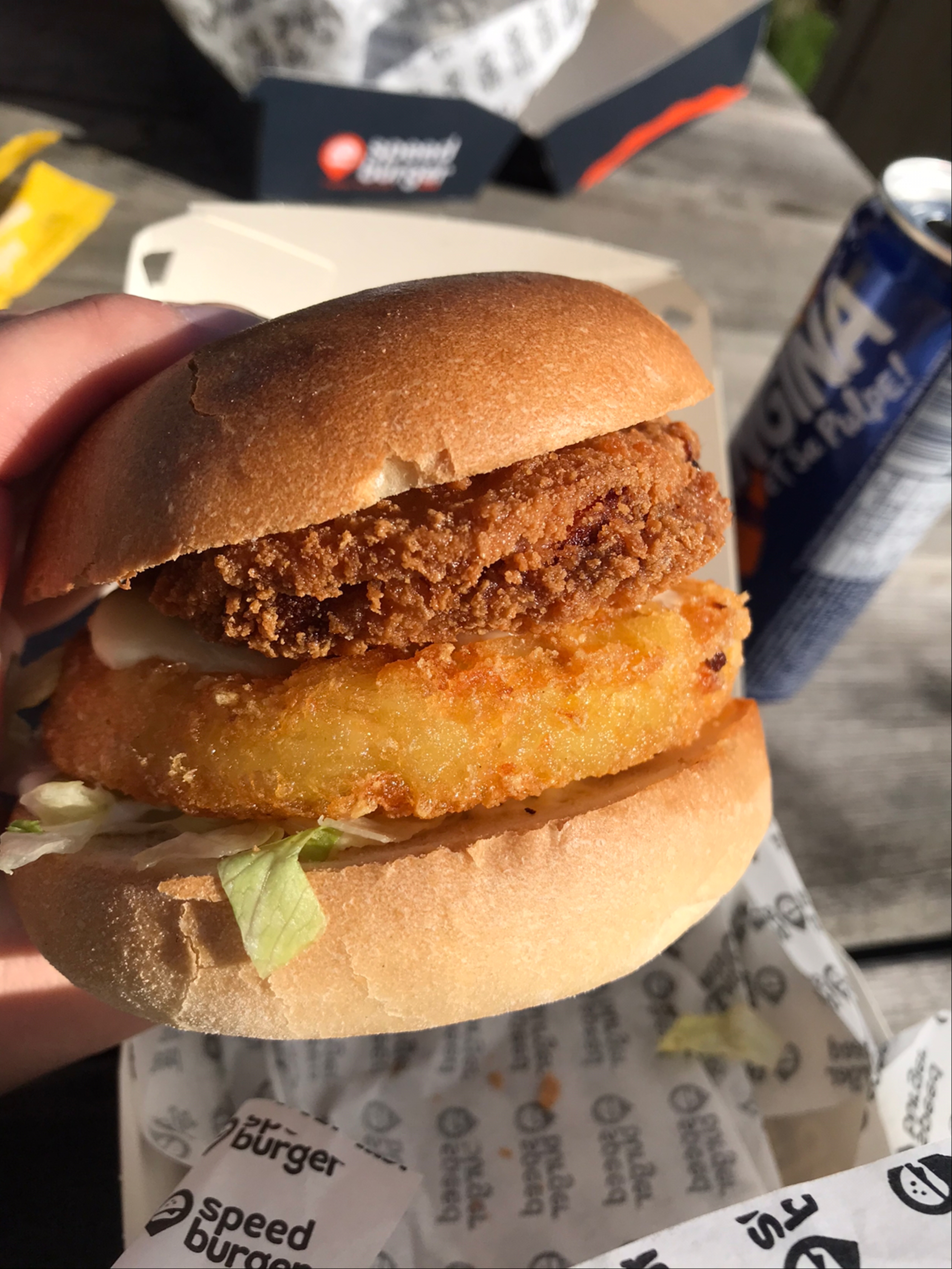 beignets aux oignons cramés, burger froid. plus jamais pour moi