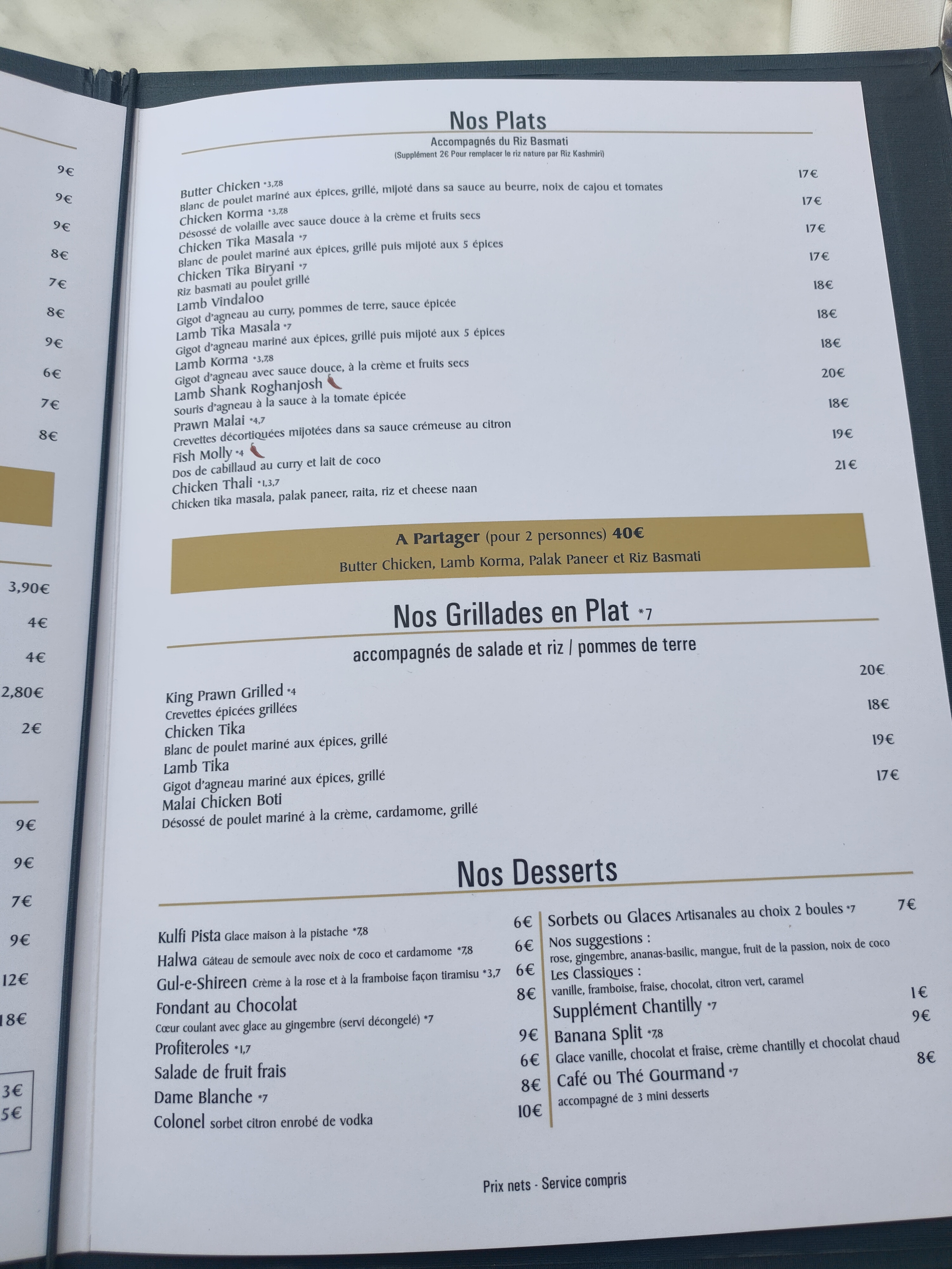 Un bon moment passé après cette période compliqué à l’occasion d’un déjeuner de pré-départ à la retraite d’un jeune ami. En terrasse par une chaleur torride. Un service efficace et courtois. J’ai bien apprécié mes plats mais je dispose pas d’une culture culinaire et surtout gustative de la cuisine indienne donc ne me fierai qu’à mon goût sans moyen de comparaison avec ses collègues. Bien relevé et bien épicé… Ravi de ce changement de cap pour ce restaurant.