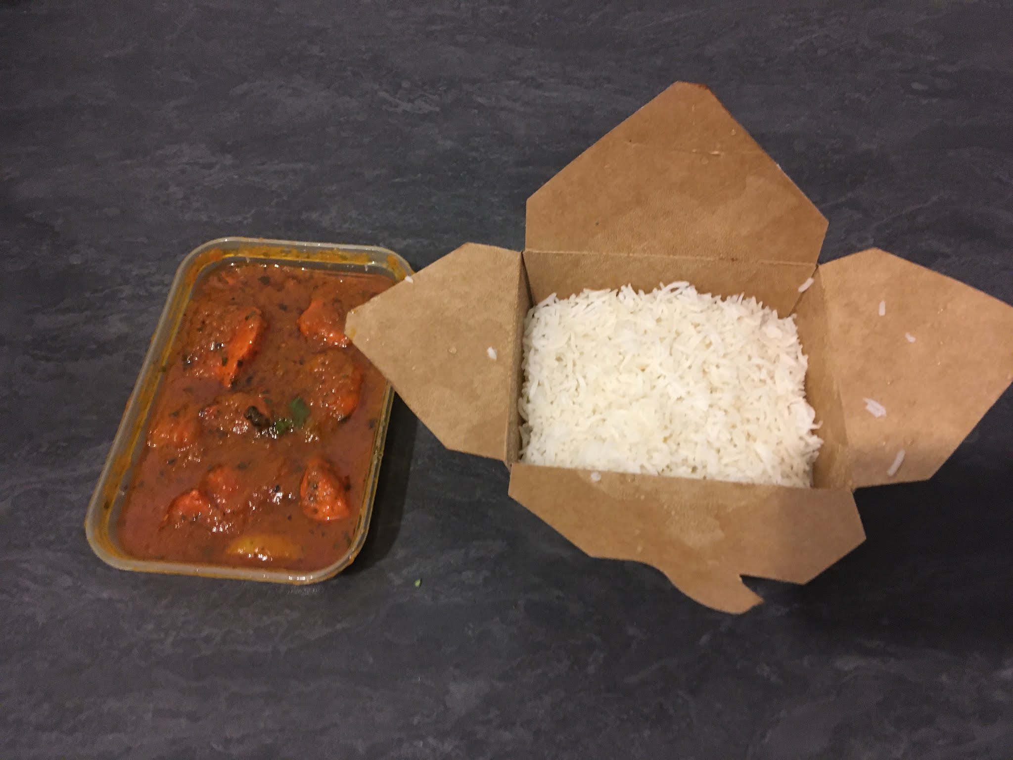 Repas pris en livraison. Lorsque je pense cuisine indienne, de suite je pense aux épices et à son piquant. J'ai pris un riz basmati biryani, pas de soucis pour le piquant ici. On sent le travail sur le plat et on reconnaît bien la coriandre, noix de cajou, tomates... Le poulet est bien présent et coloré de curry.