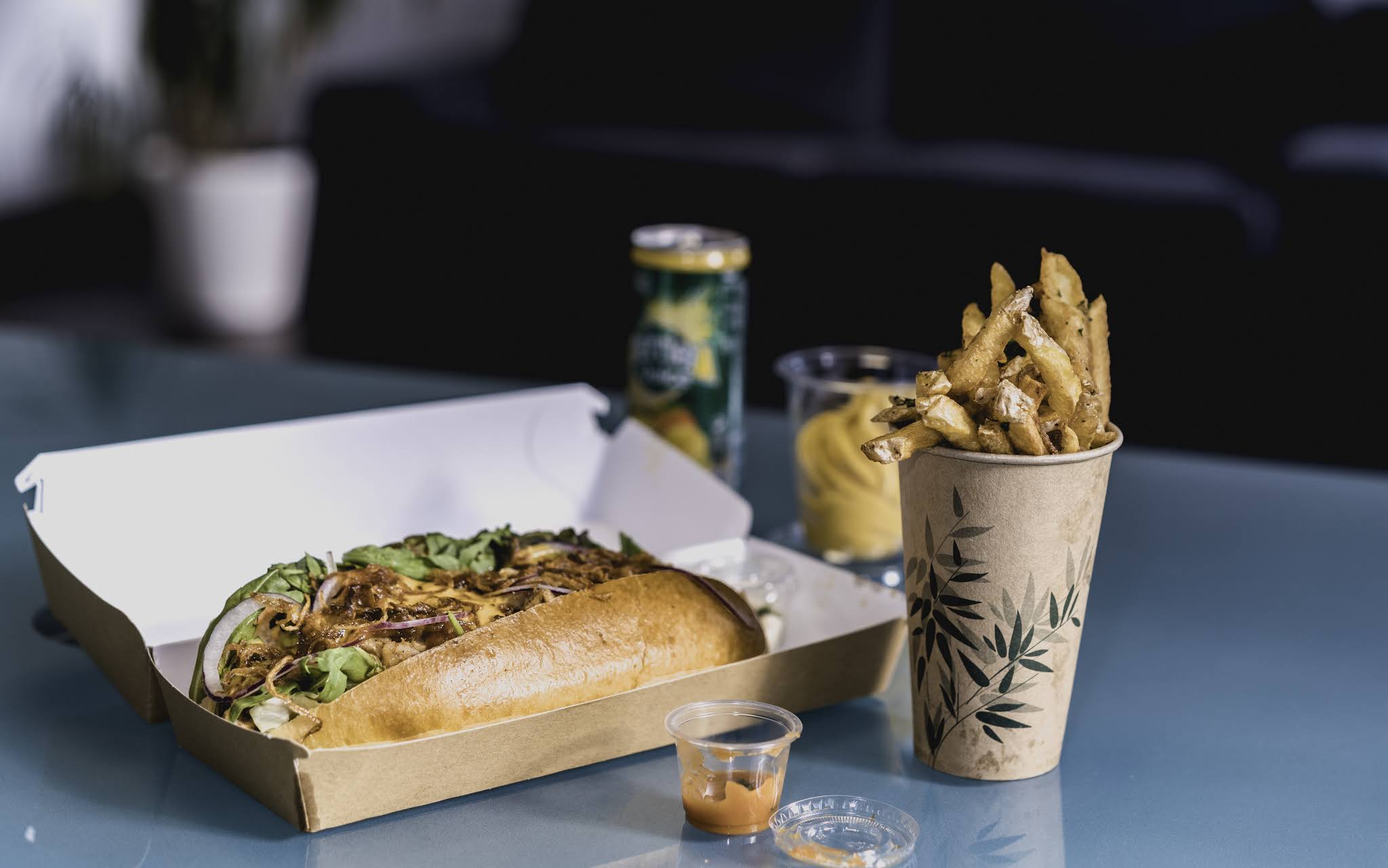 Fast food de qualité = service ultra rapide + ingrédients de qualité + tout est fait maison (même les sauces) + produits locaux + équipe au top + ambiance cosy vintage + carte simple + très bon goûts et assainissement. Excellente initiative ! Merci !