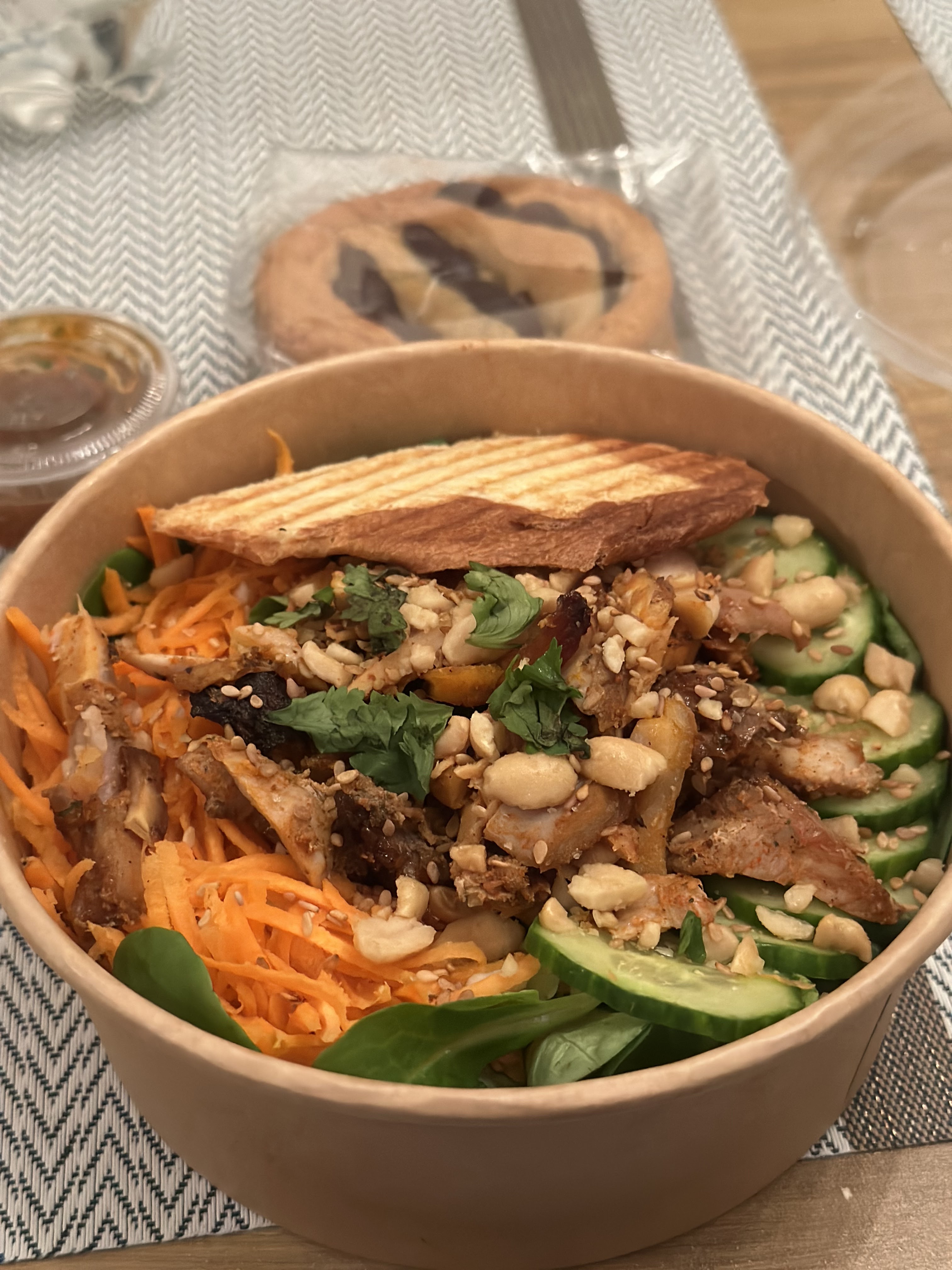 Service irréprochable ! La salade thaï était délicieuse ! Pour compenser le retard de livraison uber eat (1h20 alors que je suis à 5km) ils m’ont même offert le cookie, maison, excellent ! Je recommande 🙂