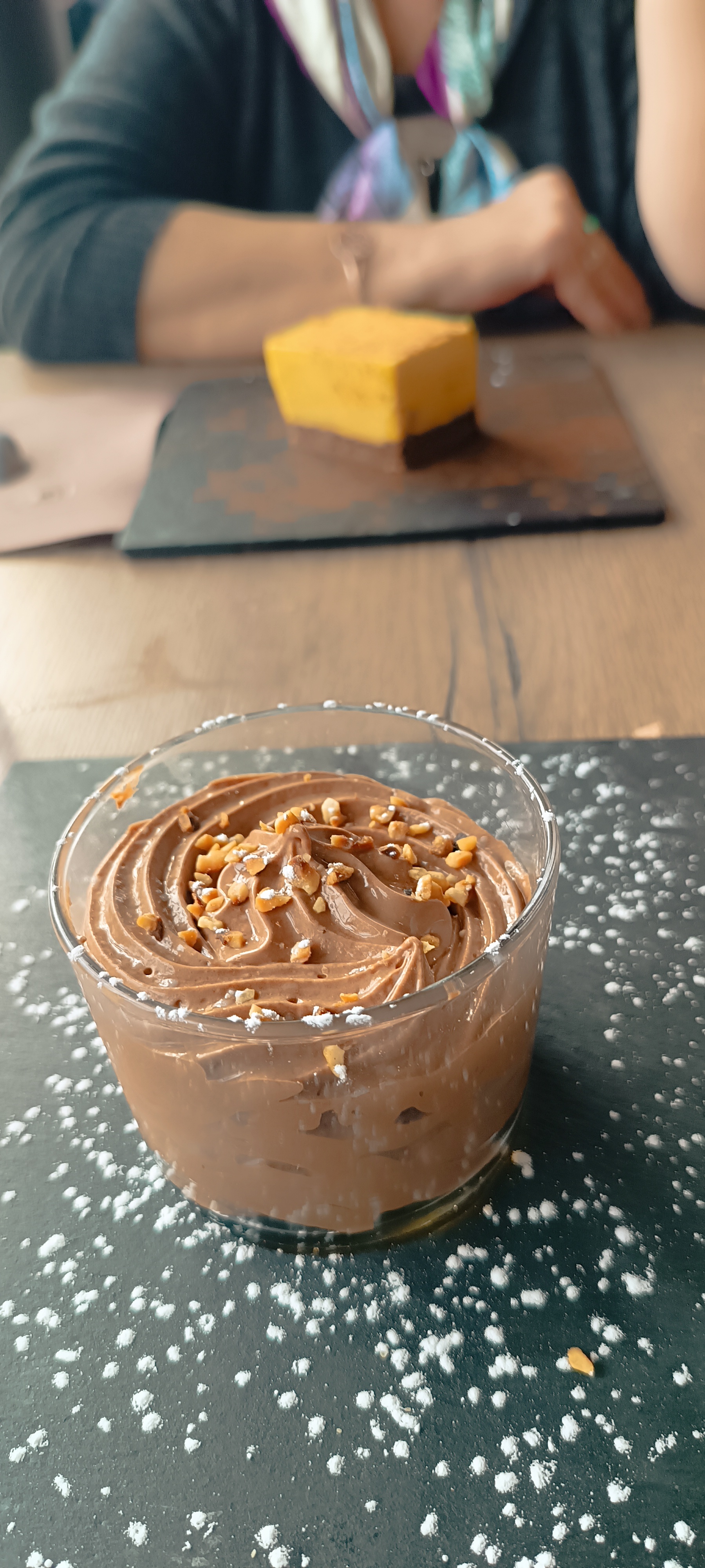 Parfait ! De l entrée au café tout était délicieux ; les chipirons fondants, les frites delicieuses et cerise sur le gâteau le CHOUMOUSSE. MERCI pour ce bon moment . Service impeccable
