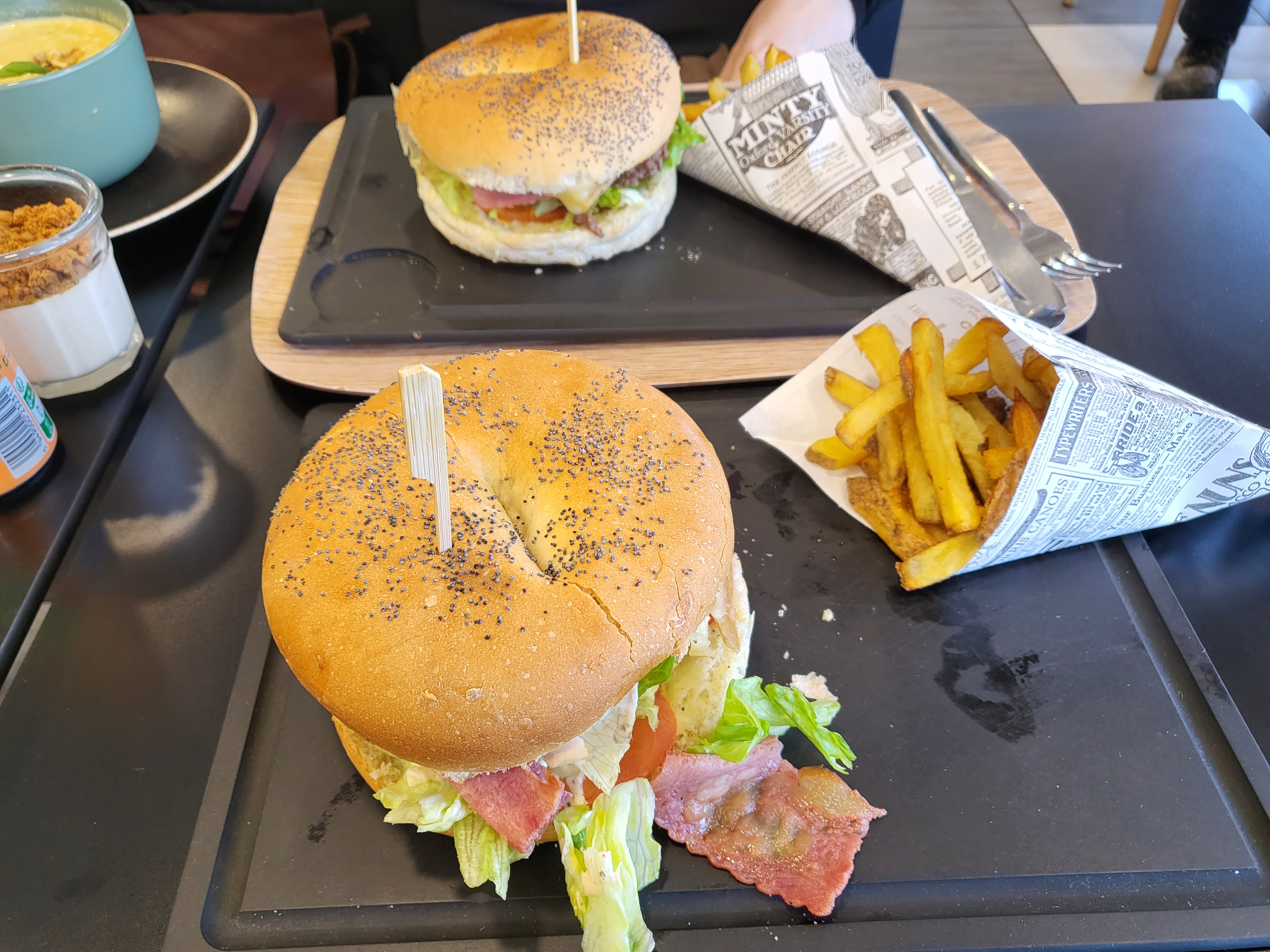 Bagel et burger super bons, avec petits desserts maison et accueil très agréable ! Habituellement on peut être déçu d établissement à côté de magasins en self, mais là c'est super ! On reviendra sans hésitez.