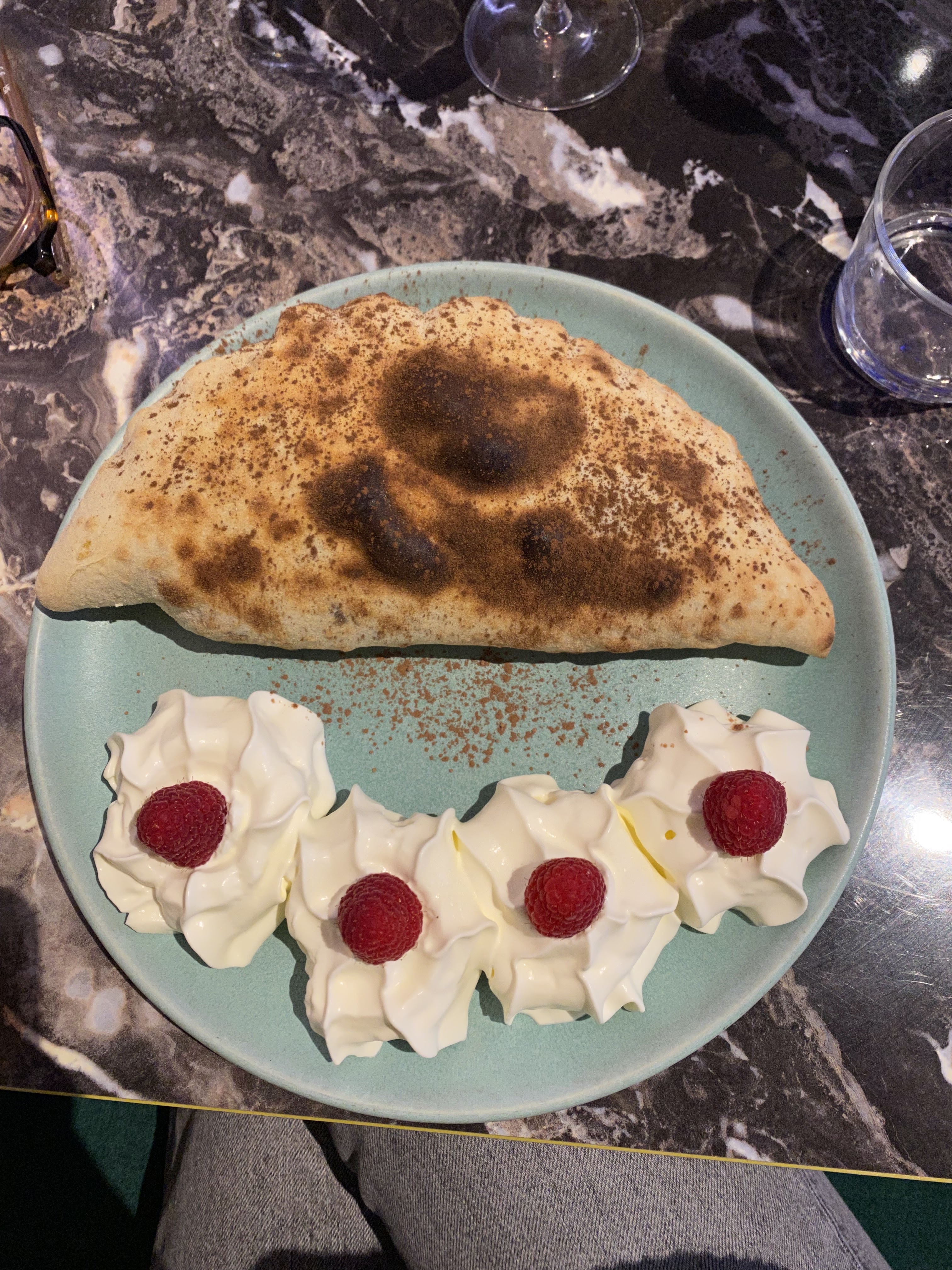 On était passé y’a 2 semaines juste prendre un dessert (fin de soirée) : Profiteroles, très bonnes. On s’était alors dit qu’il faudrait revenir manger. Ce qu’on a fait hier midi avec les enfants. Bon accueil, on retient: - cadre sympa, belle déco intérieure - service ok - Tagliatelles Carbo… rien à voir avec des « vraies » aucun liant. 3/4 de l’assiette laisse - pâtes à la truffe, trop cuites, molles - pizzas prises avaient la croute très dure. Comme si elle avait été cuite la veille. Les billes de mozza posées dessus était froides. Posée après cuisson. - glace vanille très bonne Note positive, les cocktails étaient 👌 Bref, perso je ne reviendrai pas.