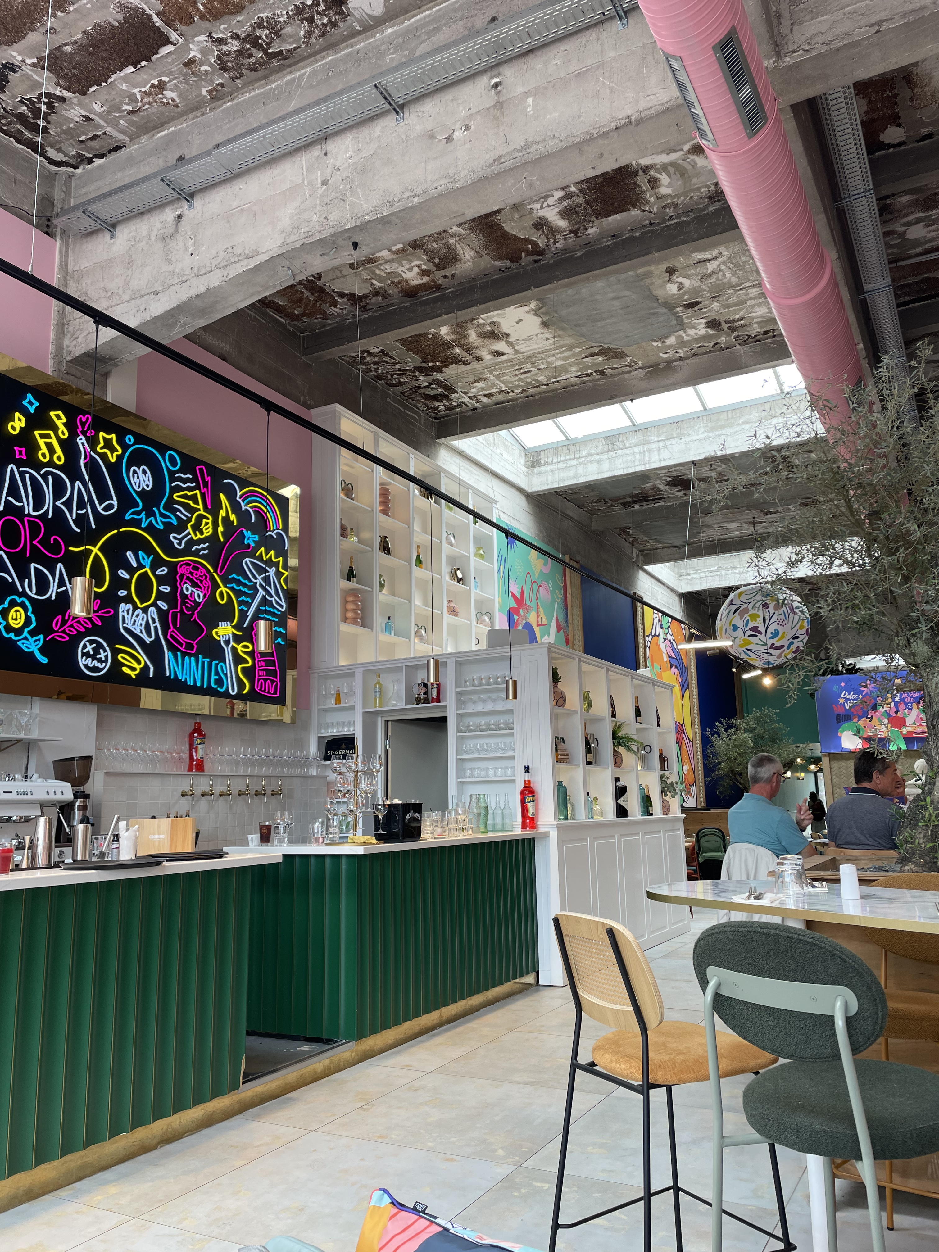 Une super ambiance, dans un super décor, le restaurant est grand et permet d'avoir plusieurs possibilités : manger en terrasse, boire une verre, manger sur des tables hautes ou dans des espaces plus cosys. Les cocktails sont très bons et très bien présentés, n'hésitez pas à demander l'arbre à Spritz ! Les pizzas sont très bonnes et les recettes originales, cela change des pizzas traditionnelles ! Le restaurant est très bien situé sur les quais de l'île de Nantes : possibilité de voir l'éléphant et les machines de l'île et de suivre la ligne verte du Voyage à Nantes ! Je recommande !