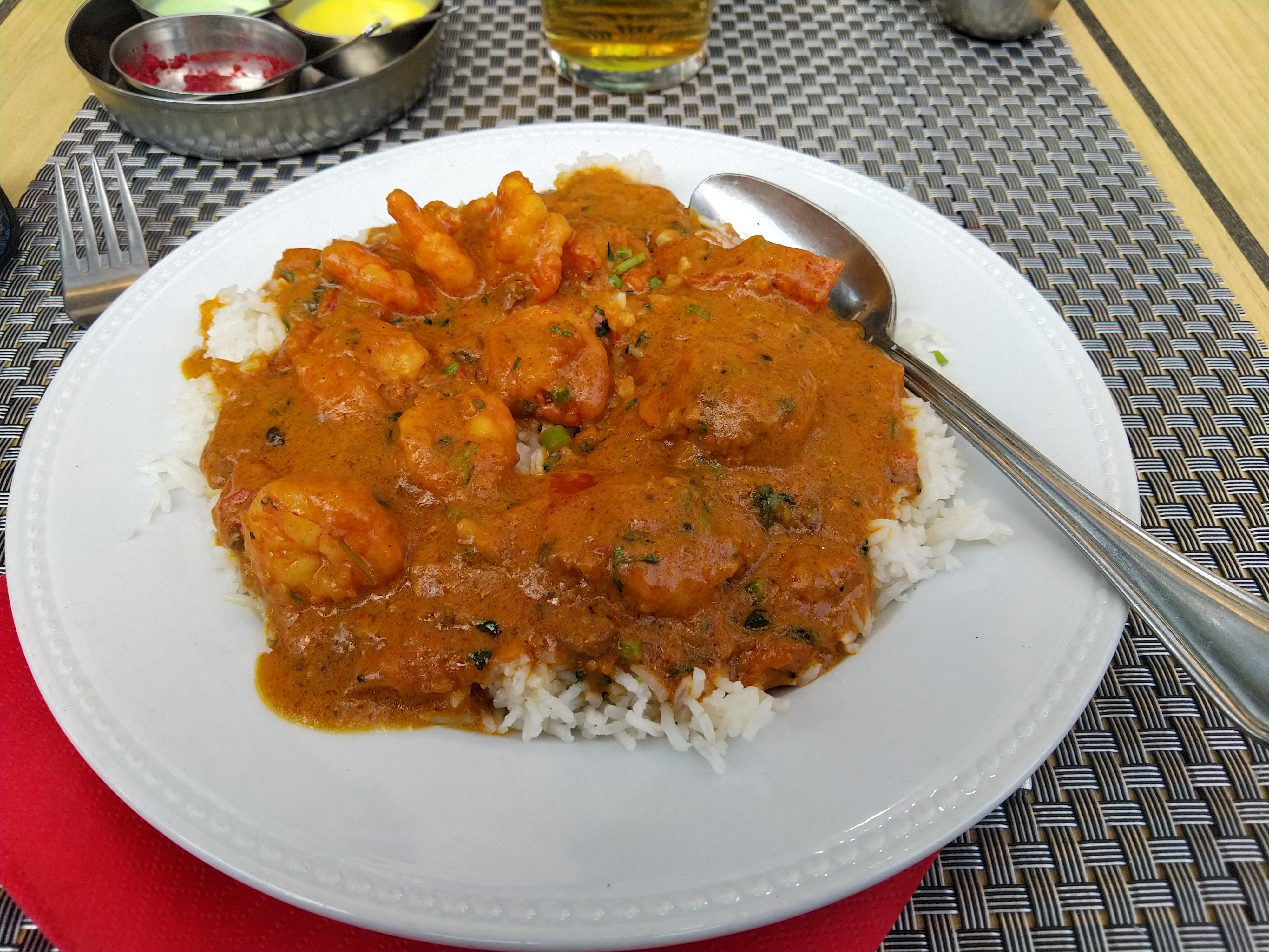 J'ai mangé ce soir dans ce restaurant choisi un peu au hazard, et je n'ai jamais mangé un plat aussi délicieux. Quand on va dans un restaurant, en général les plats sont bons mais pas non plus extraordinaires (ou en petite quantité si c'est le cas), et ici, les crevettes au lait de coco avec raisins sec étaient incroyables, quantité parfaite, saveur parfaite, je les ai prise sans piment et c'était excellent, pour moi ce restaurant est le meilleur dans lequel j'ai mangé.