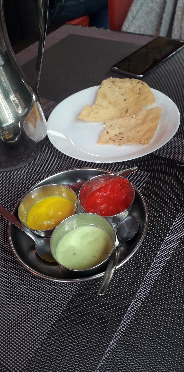 C'était la première fois quand on est venu dans ce restaurant.🙂 On a fait une réservation pour le soir du 14 février.❤️ On nous a donné une table sur la terrasse. Il faisait chaud dedans, donc c'était assez confortable. Dans l'air on pouvait sentir l'odeur fort d'épices ce qui donnait l'envie de manger.🤤 La carte propose la quantité suffisante des plats.🧆🥘 On a prit des entrées et des plats principales. Chapeau bas.🤩 Samoussa - au top, naan au fromage - une merveille.🇮🇳🥰 Nous y rentrerons pour goûter un dessert comme cette fois il nous a manqué la place dans le ventre.🥹😁