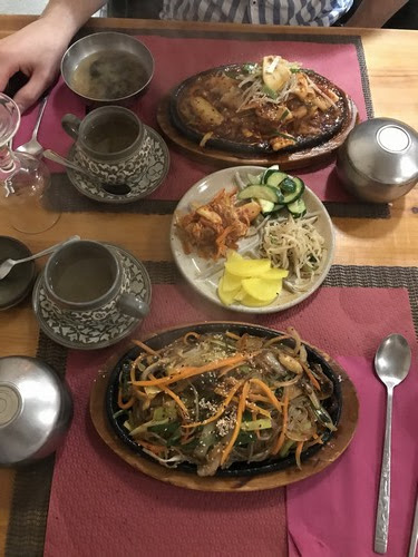 Restaurant typiquement coréen dans lequel on mange comme au pays. La femme est à la cuisine et le mari fait le service. La nourriture est excellente notamment le bulgogi, les mandoos et le bimimbap. Il y a la possibilité de boire du vin de riz (makkoli) qui a un goût original et qui est typique du pays du matin calme. En conclusion, c'est une expérience très enrichissante.