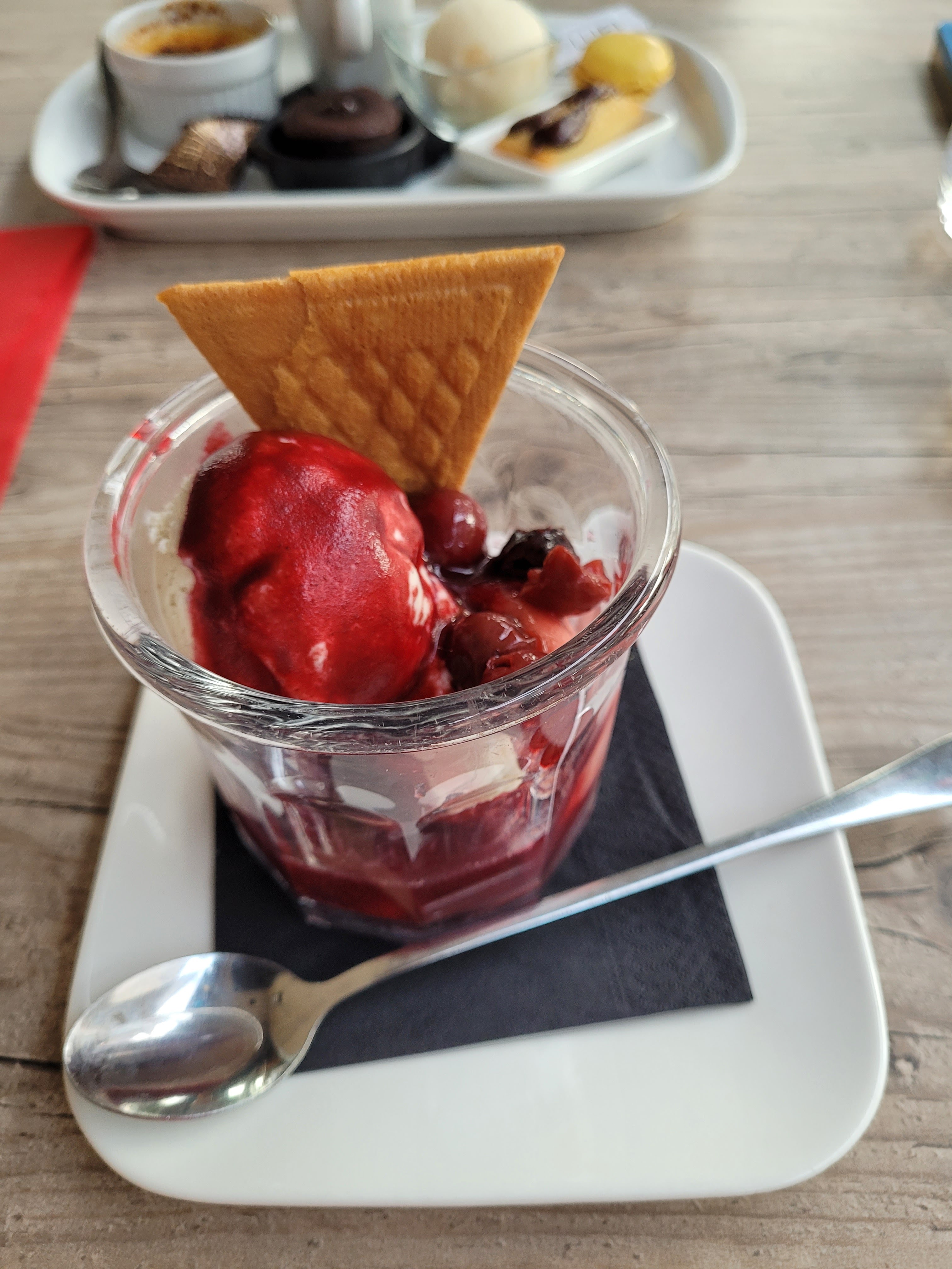 Une excellente cuisine traditionnelle généreuse dans un cadre plaisant avec une équipe très sympathique. Le plus du jour : un petit verre de Prunelle offert par Christophe (le patron des lieux) à la fin du repas. Et puisque l’on parlait de la glace à la Prunelle, ce dernier s’est fait une joie de rapporter une petite coupe avec 3 cuillères pour nous la faire découvrir ! Encore une initiative très agréable qui nous fera sans nul doute revenir dans ce restaurant !!! Merci et bravo pour tant de qualité !