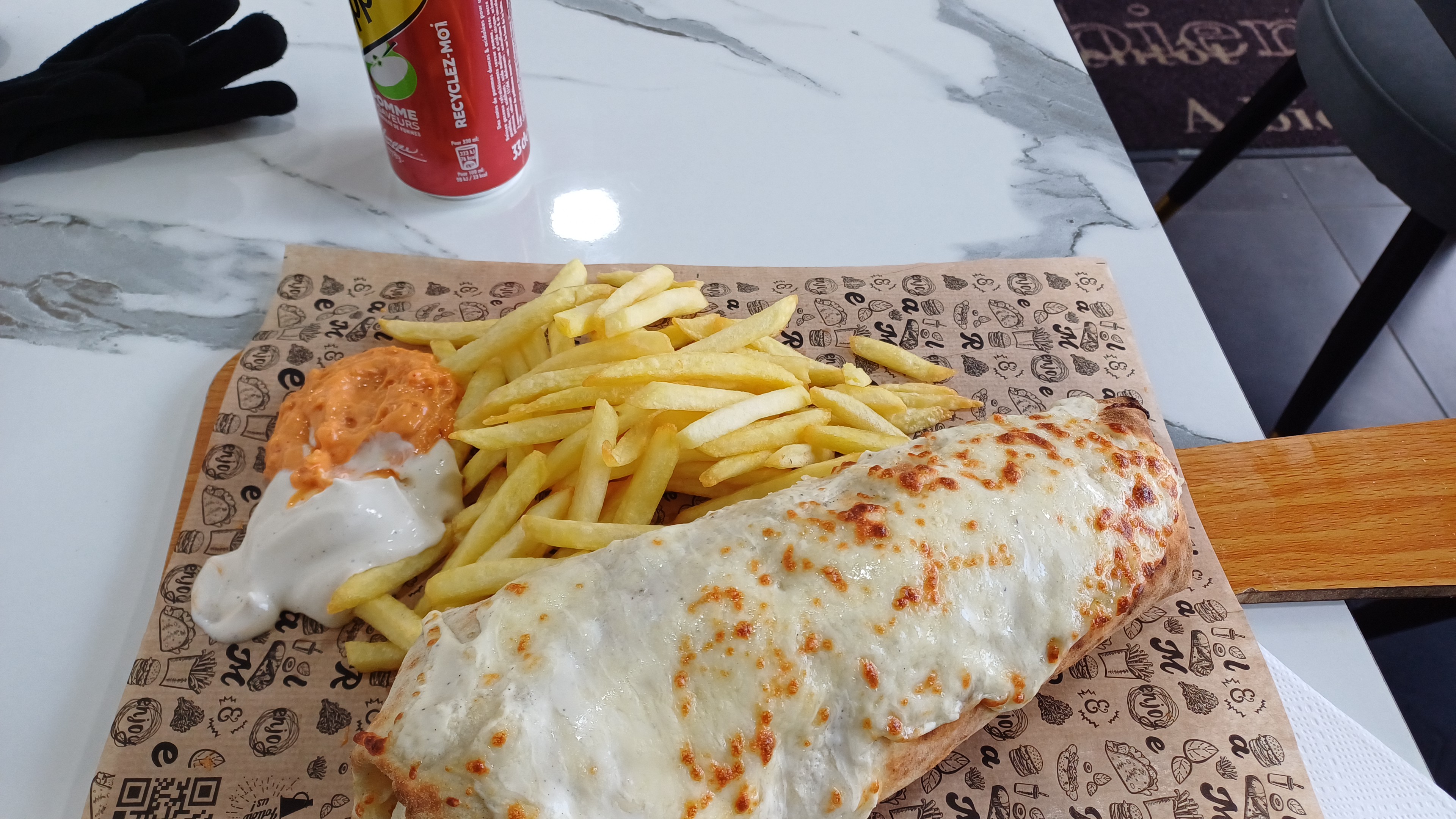 Tacos très bien garni et moelleux sans être mou. Pizza 5 fromage super bonne. Peut être les frites un peu trop blanche pour moi. J'y retourne ce soir ;) Bon appétit