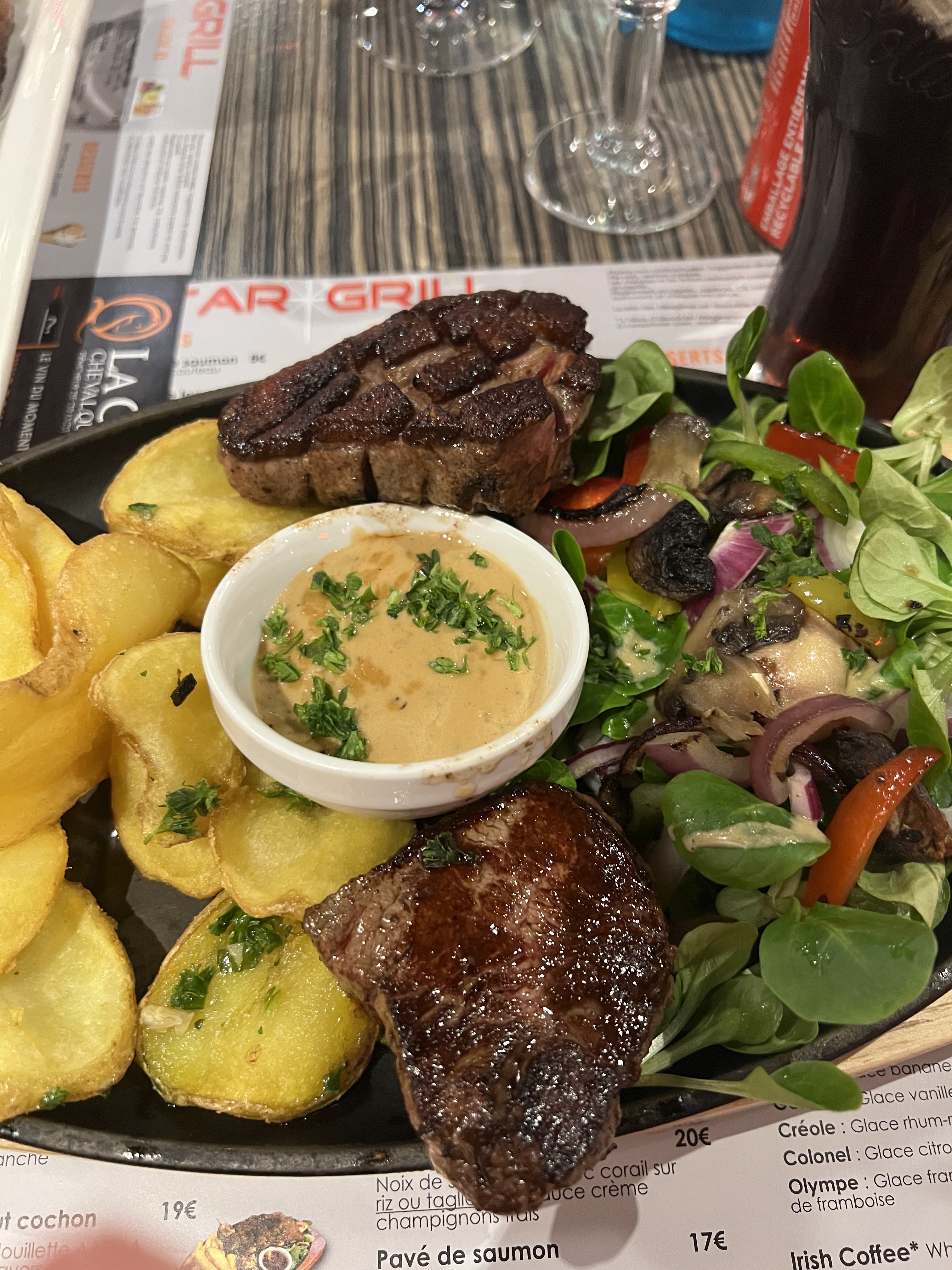 Très bon service le serveur et super sympa l ambiance et super la viande et bien cuite les plats très réussi prix désolant selon moi je recommande