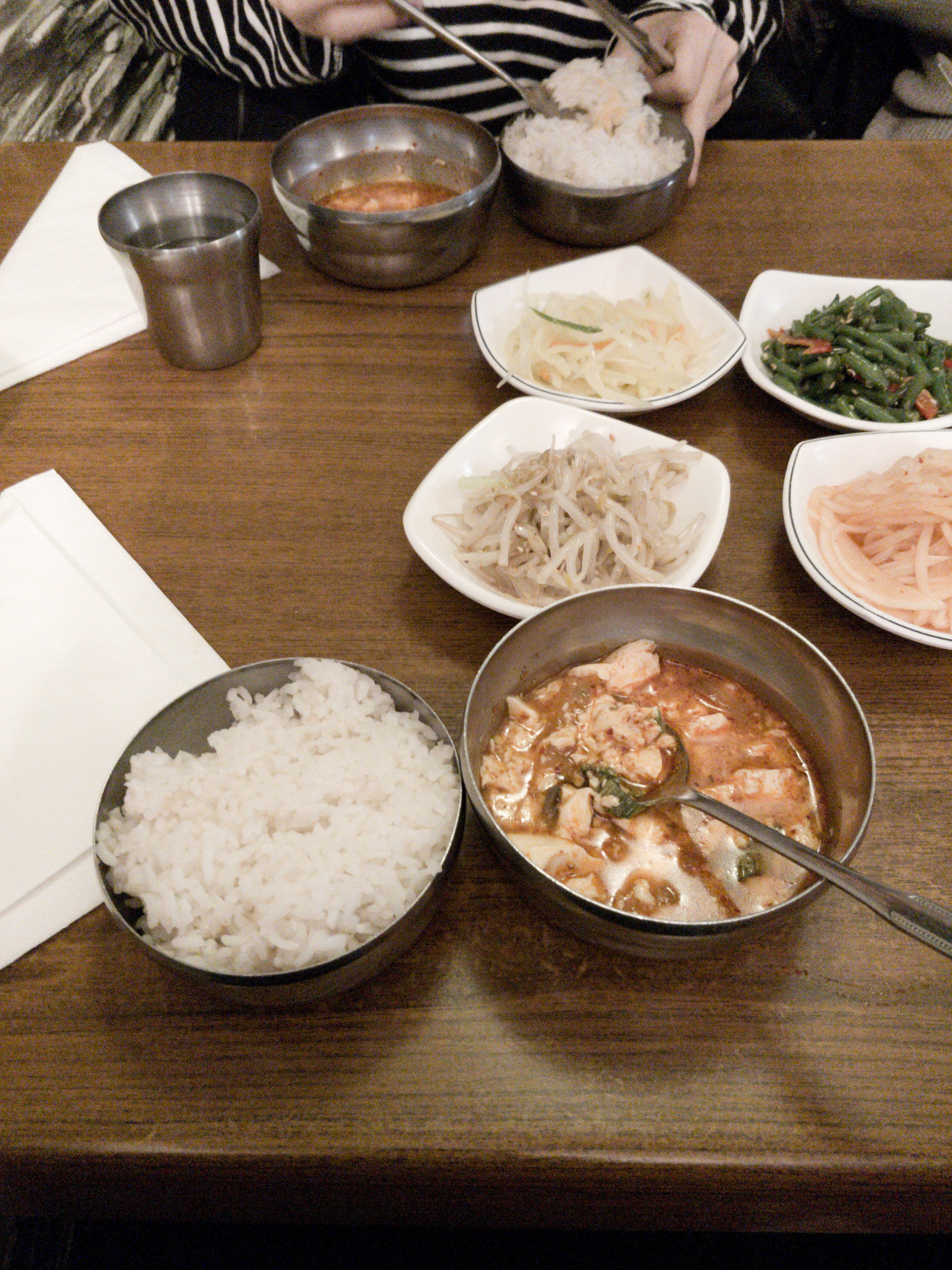 La nourriture était correcte mais il y a place à amélioration. En fait, nous aimons plus le banchan (plats d'accompagnement gratuits) que les plats !!