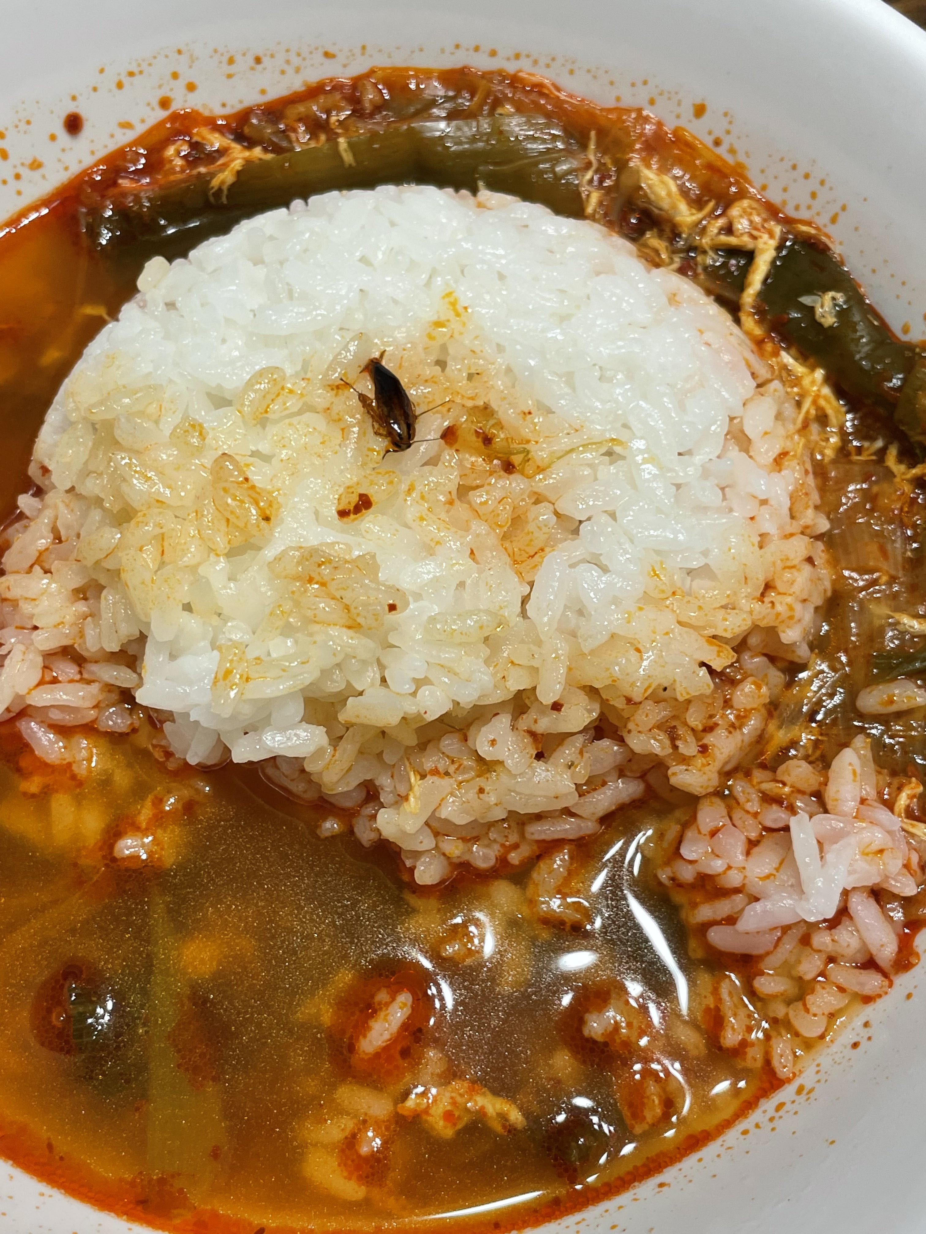 C’est le plus grand choc que j’ai jamais vécu dans ma vie. Rien d'autre à dire, juste des photos. Au moment où vous renversez votre bol de riz pour manger le riz de la soupe Tout le monde dans la pièce a arrêté de manger et est parti. J'en ai informé l'employé, mais Peut-être parce qu'ils étaient gênés aussi. Plutôt que des excuses J'ai dit que je te préparerais un nouveau repas, mais Tout le monde dans la pièce, moi y compris, a refusé de reprendre le repas. Quand tu exprimes que tu ne veux pas Voudriez-vous que je paie sans un mot d’excuses ? J'ai été choqué pour la deuxième fois quand tu as dit cela. Je tiens à vous informer qu'il provenait du riz et non du menu. Si j'avais mangé mon riz sans le rouler et que j'avais fini par rencontrer un cafard, cela ne se serait jamais terminé ainsi. C'est la première fois de ma vie que je vais dans un restaurant qui contient des cafards dans son riz.
