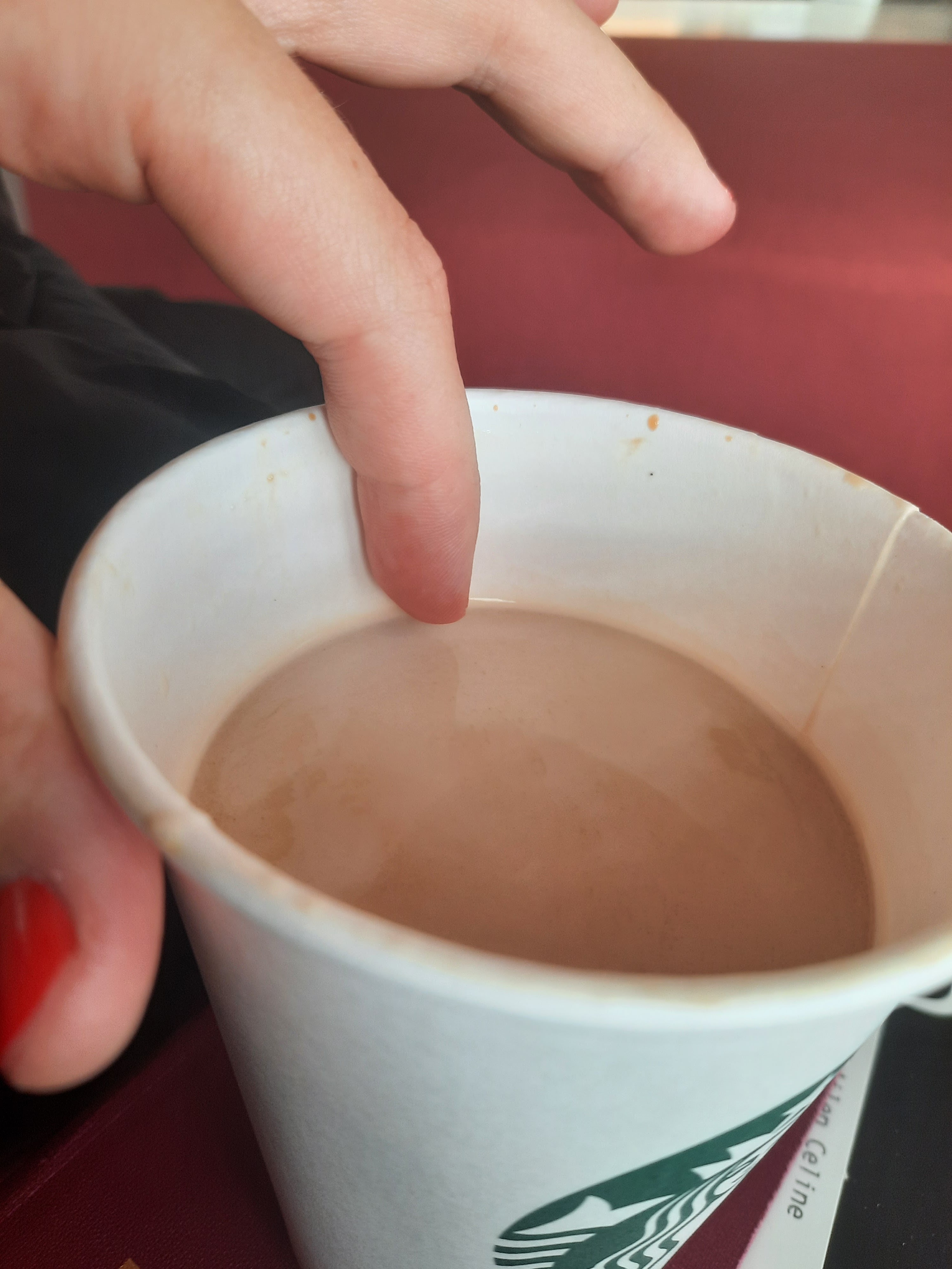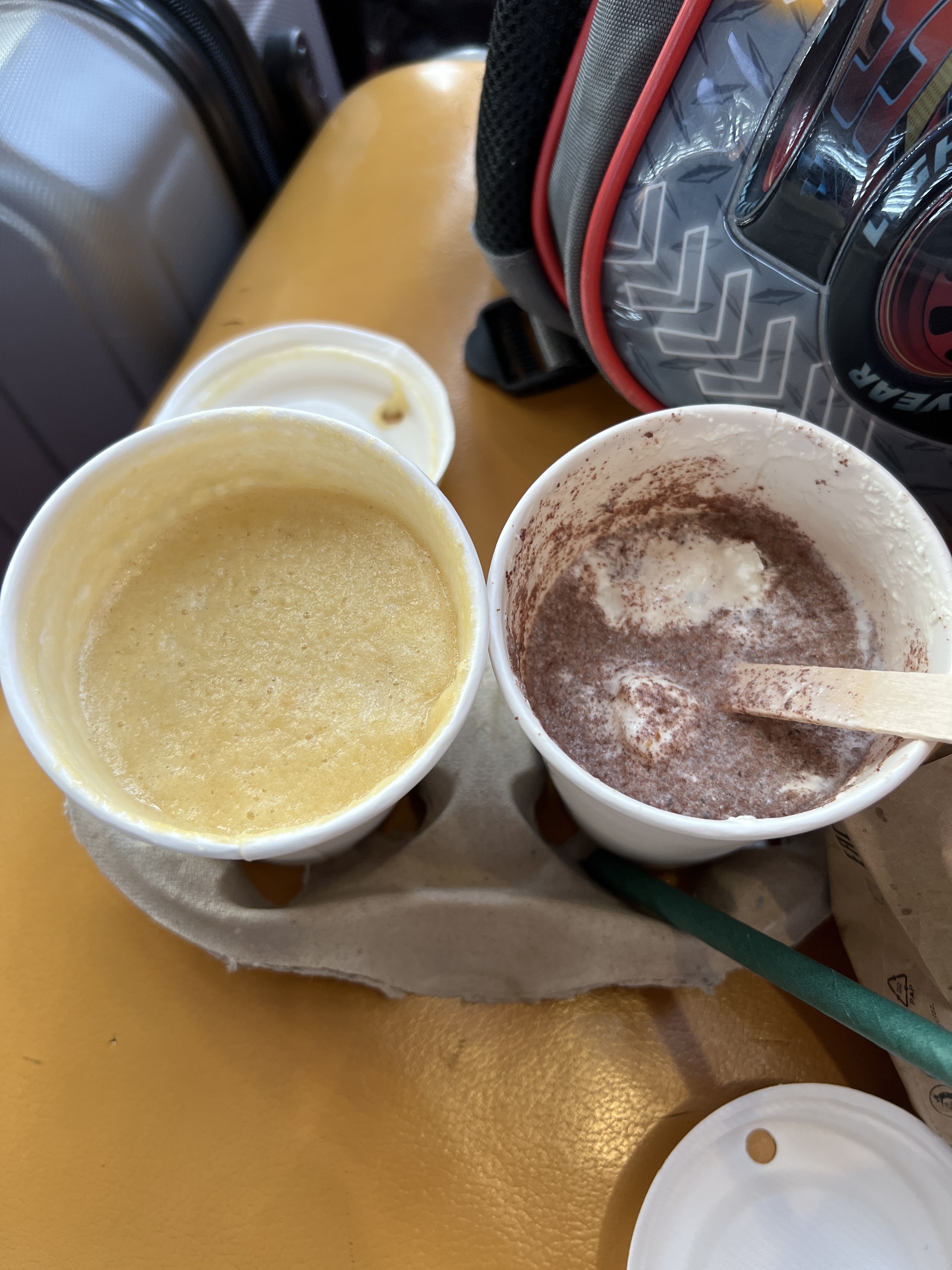 Sérieux comment il peuvent ouvrir un comme ça juste pour ramener de l argent vu qu il se foute de la g... Des clients. Même le chocolat il ferme mal le couvercle comme ça quand tu bois tu renversé tout sur toi et du coup ton manteau et ton pantalon plein de chocolat et après tu te tape 8h de vols avec un pantalon trempé et un manteau trempé aussi qui pu le chocolat 15 balles dans le vent j ai tout jeté.