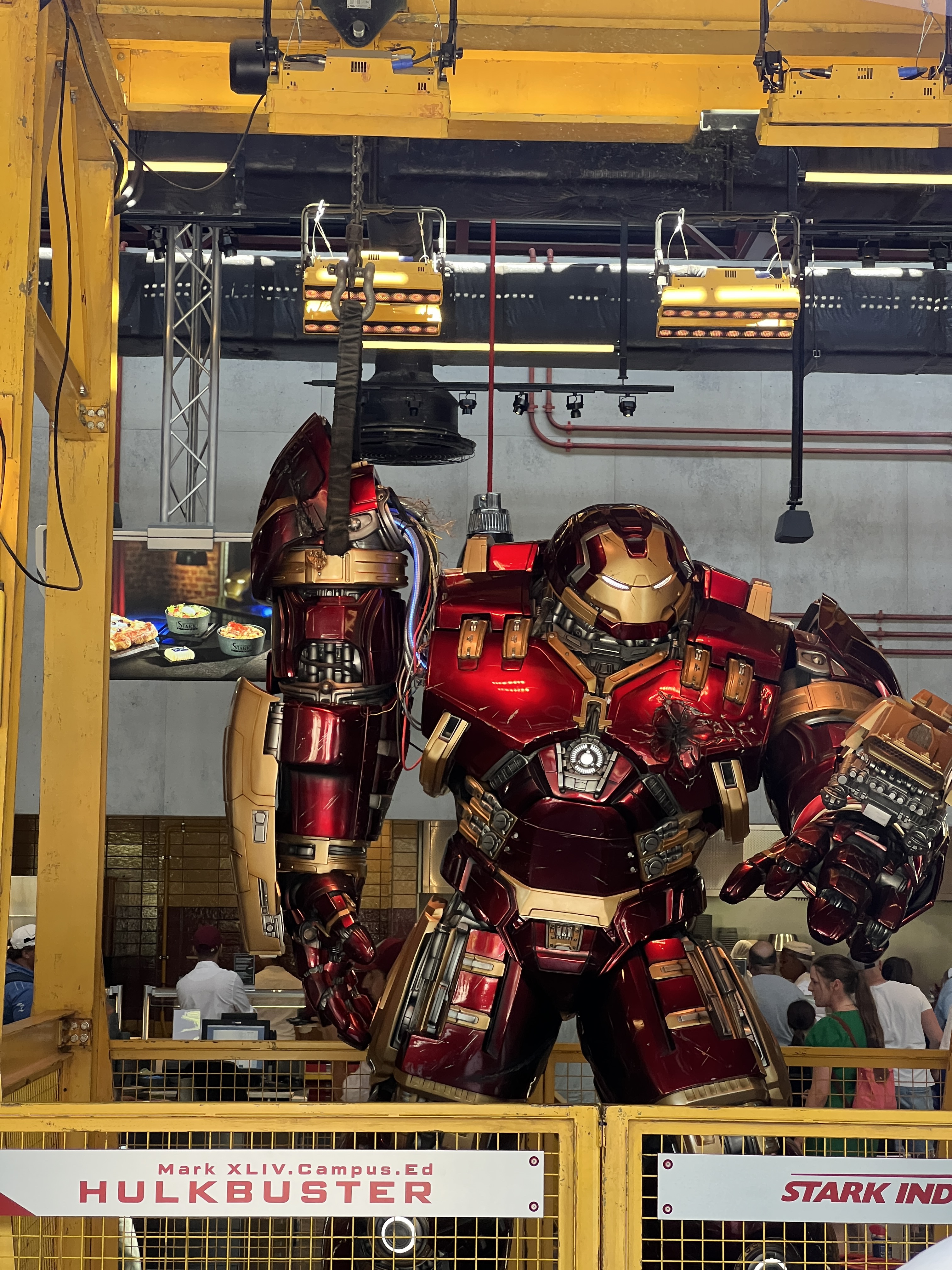 Une partie des décors est sympa ( surtout l'armure d'iron man) mais le reste est assez pauvre je trouve. Nourriture bonne mais beaucoup trop chère. C'est vraiment abusé ! Sinon cast members très sympa.