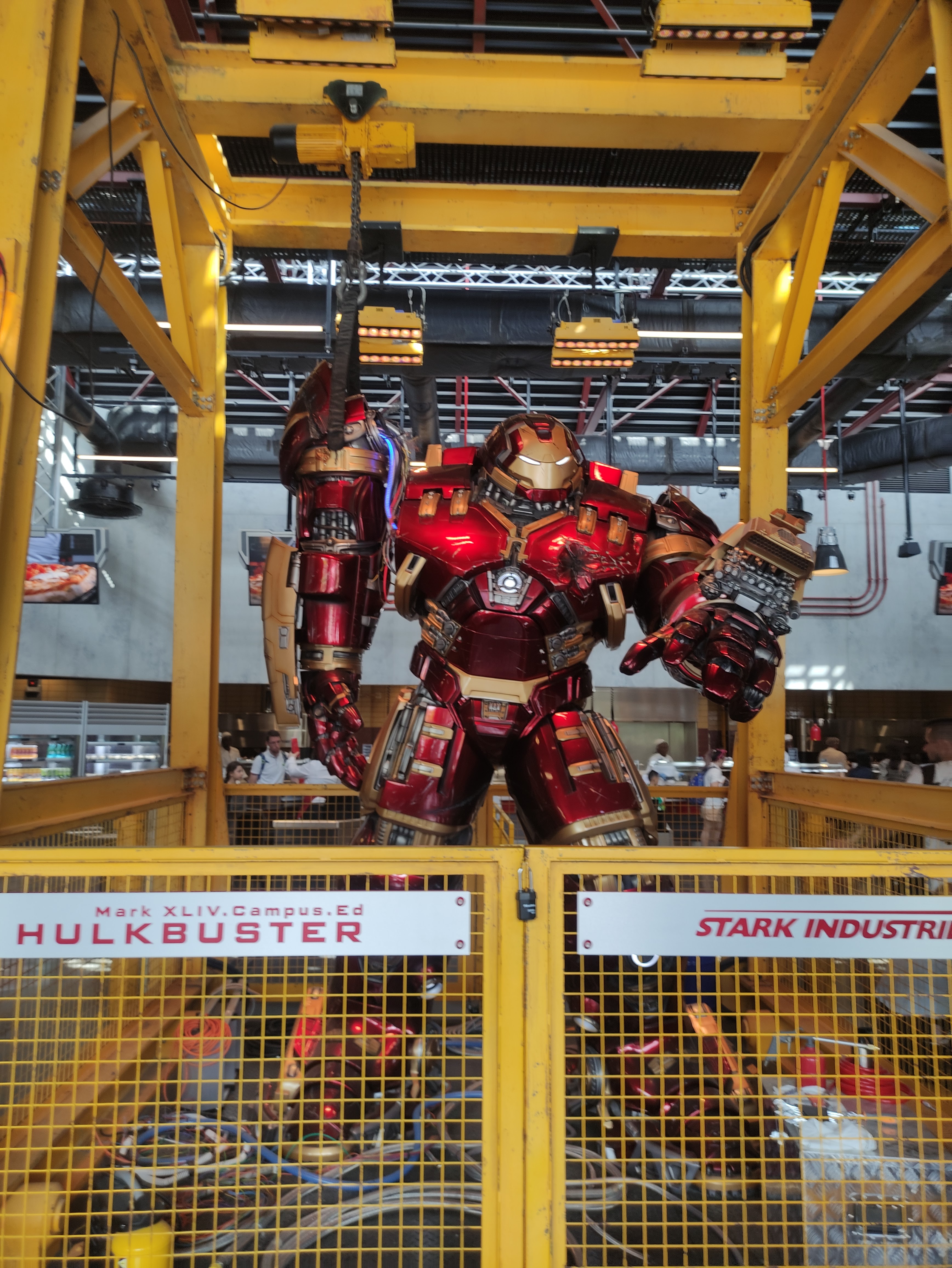 Les portions sont énormes et la nourriture est servie dans des contenants réutilisables. Le système s’apparente à celui d’une cantine, c’est pourquoi il fonctionne assez rapidement. Les prix sont corrects, comme dans le reste du parc. L'ambiance est un peu inconfortable, mais c'est pour cela qu'il y a le Hulkbuster à l'entrée.