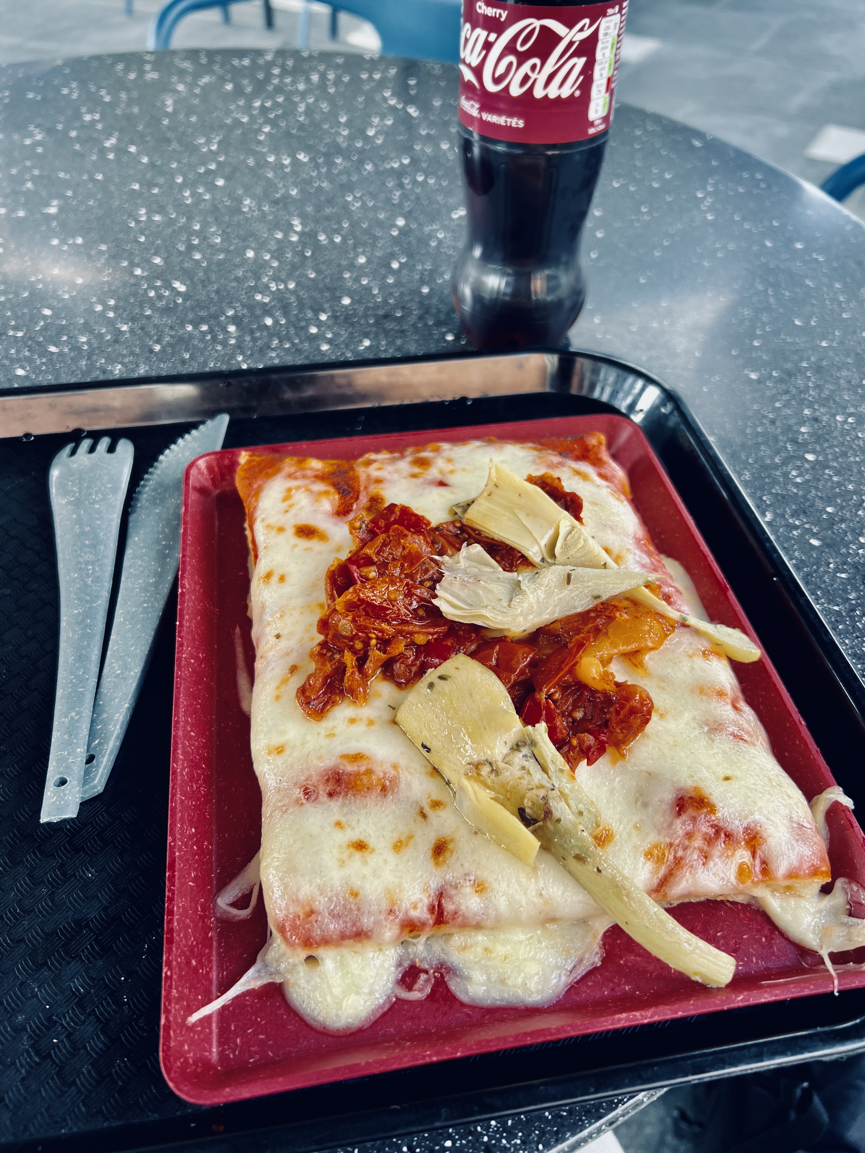 Je viens de manger une part de pizza, très chère mais moyennement délicieuse