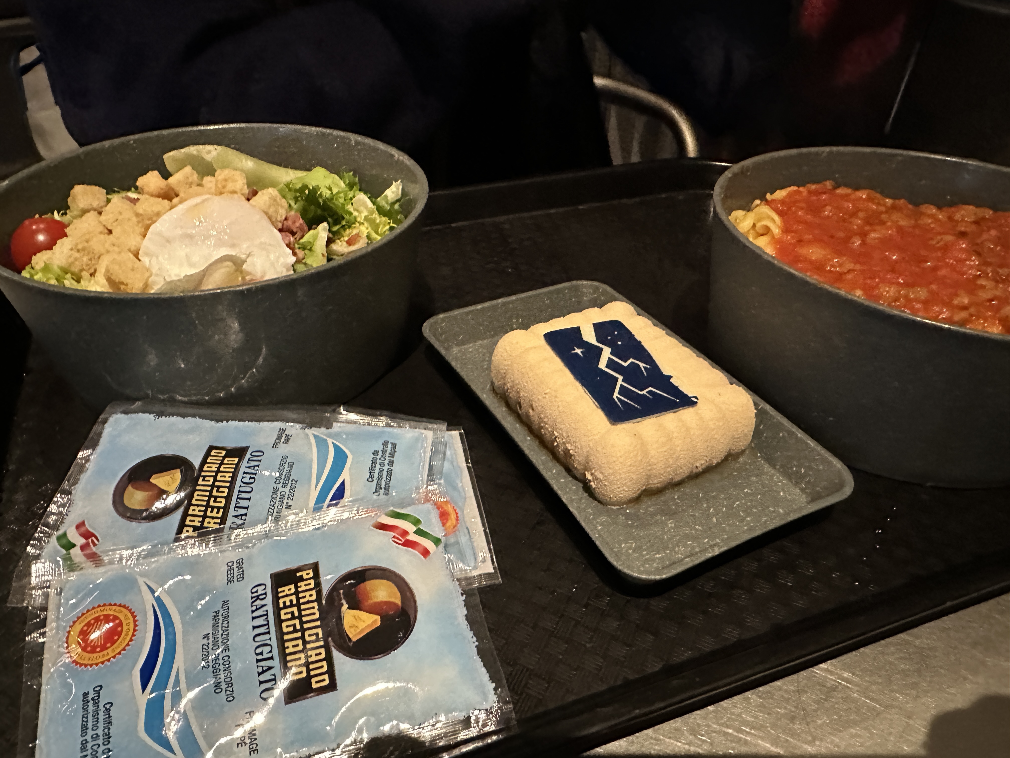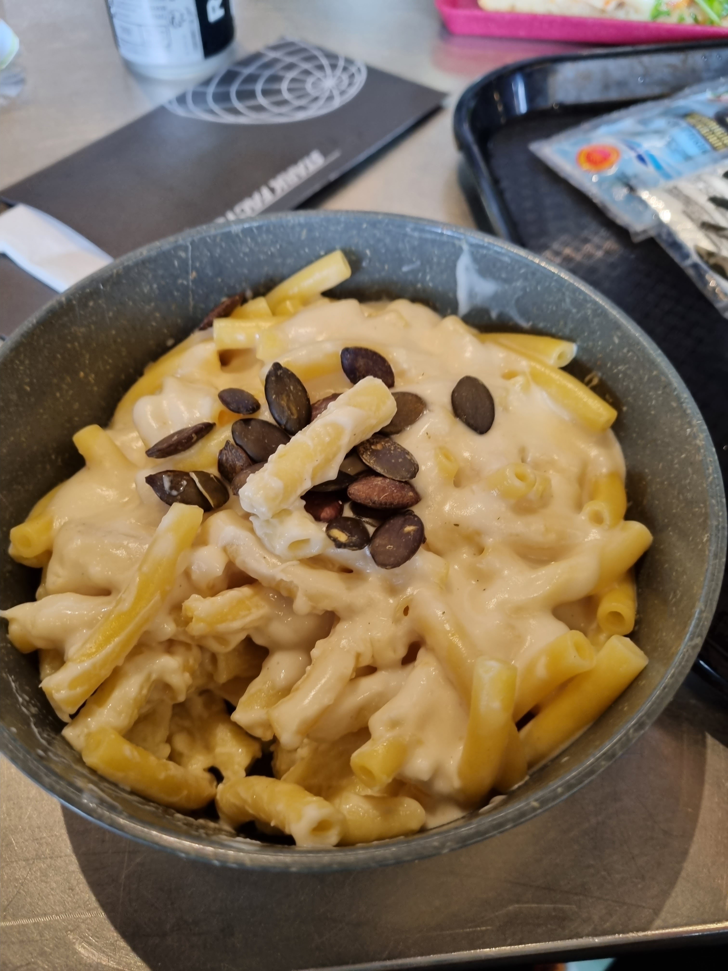 Que dire ? Très peu de choix (3 sortes de part de pizza, 3 sortes de pâtes) et un peu de salade… 13€ pour un bol de petites penne avec de la sauce Miracoli (fromage râpé payant) Décevant…