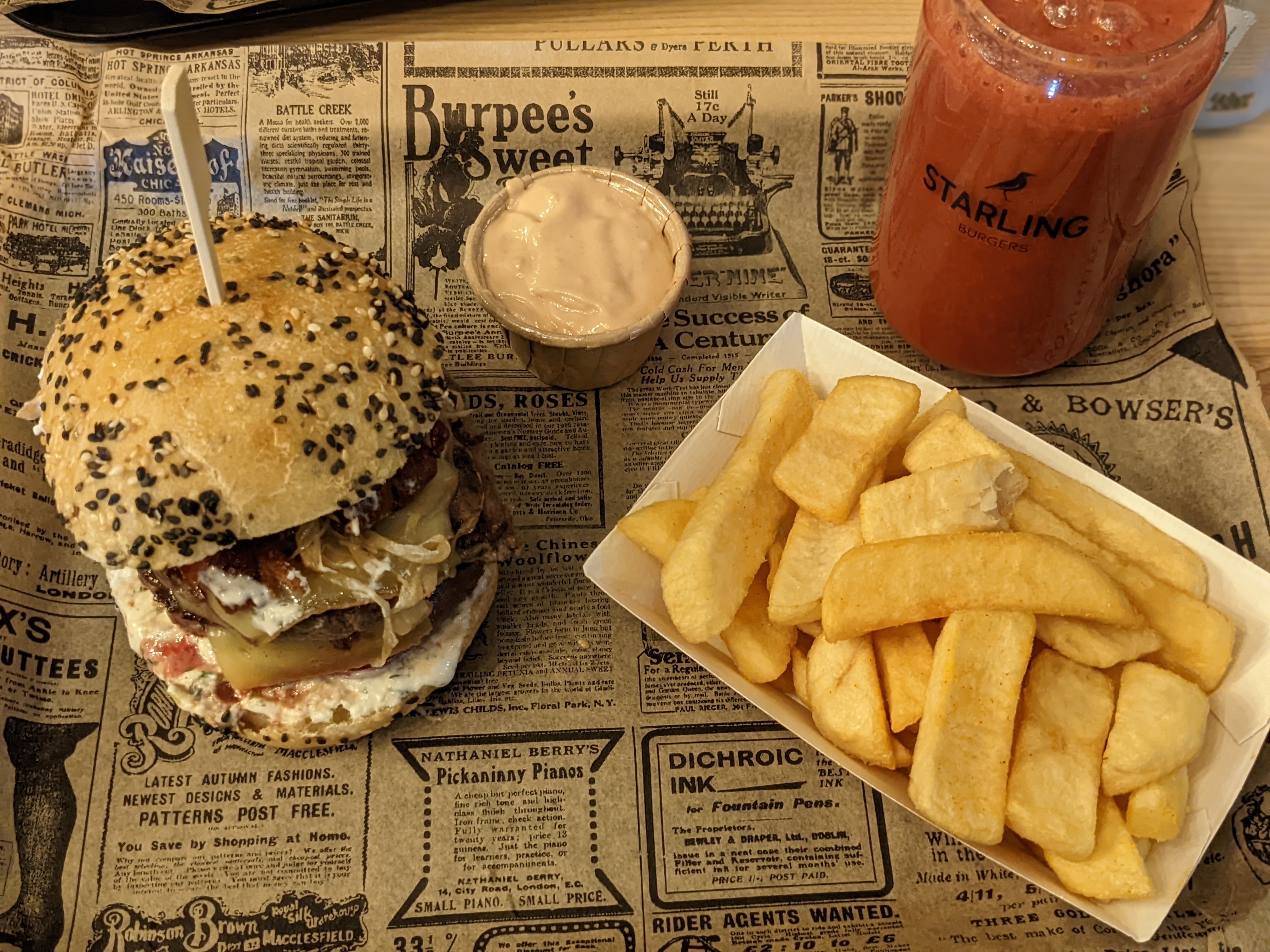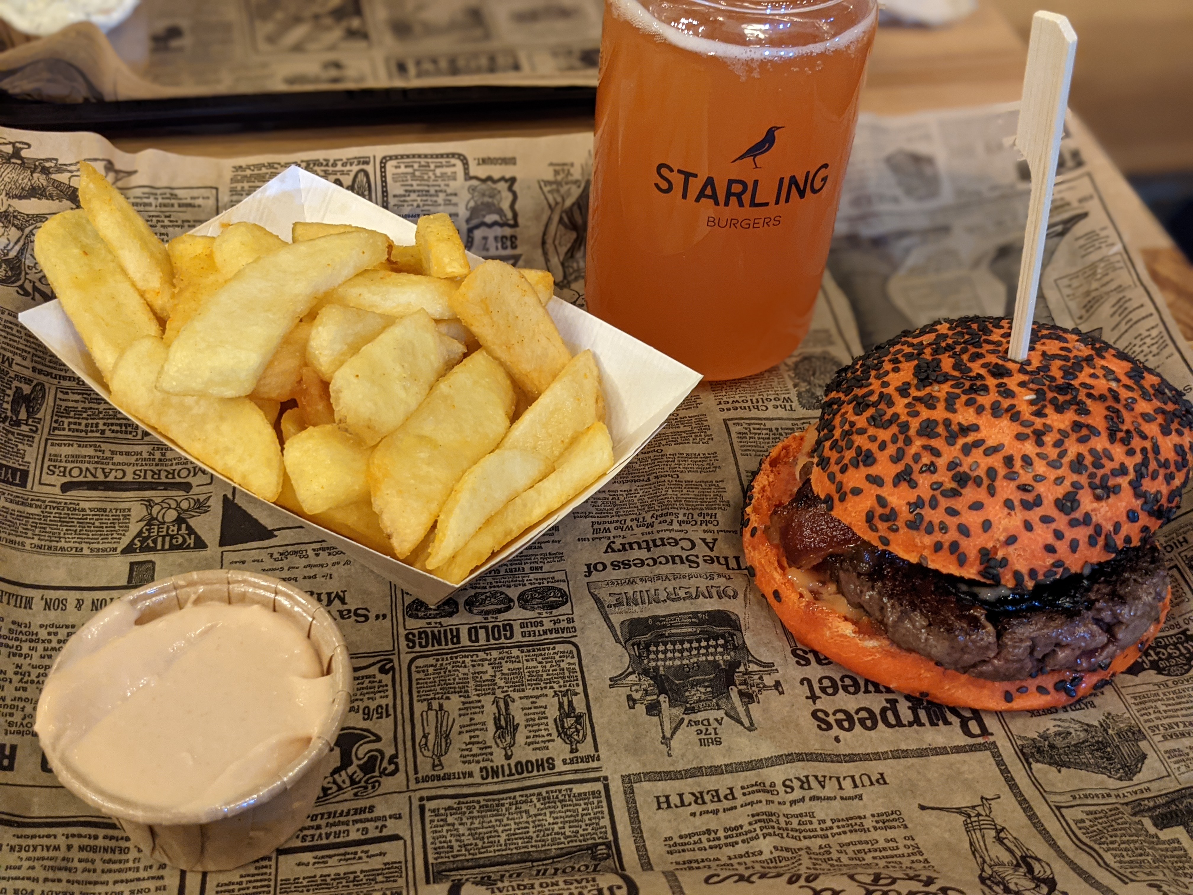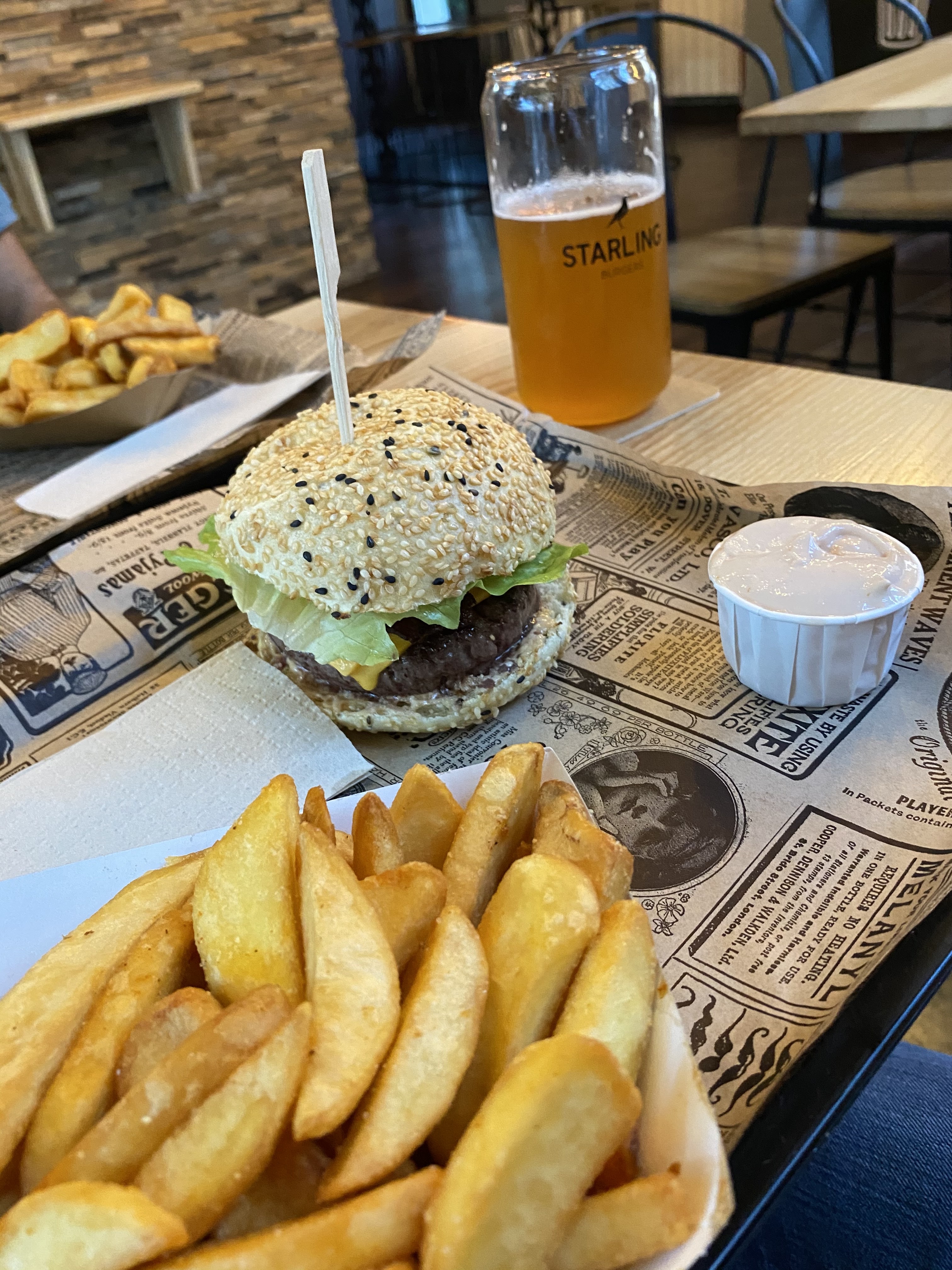 Sans aucun doute l'un des tout meilleurs burgers de Strasbourg. La composition est très réfléchie, tous les ingrédients sont frais et ont du goût! Par exemple: le pain que j'ai pu goûter alliait graines de sésame et de pavot pour un tout très croustillant! On est donc loin des buns sans goût et à la texture molle et ennuyante. Tous les burgers ont une recette alternative végétarienne et les bières sont toutes très recherchées et bien sélectionnées, Starling n'a pas à rougir des meilleurs bars / brasseries de Strasbourg. Bref, de quoi ravir les aficionados en quête de qualité et de nouveauté... ou même de quoi faire changer d'avis les sceptiques du burger !