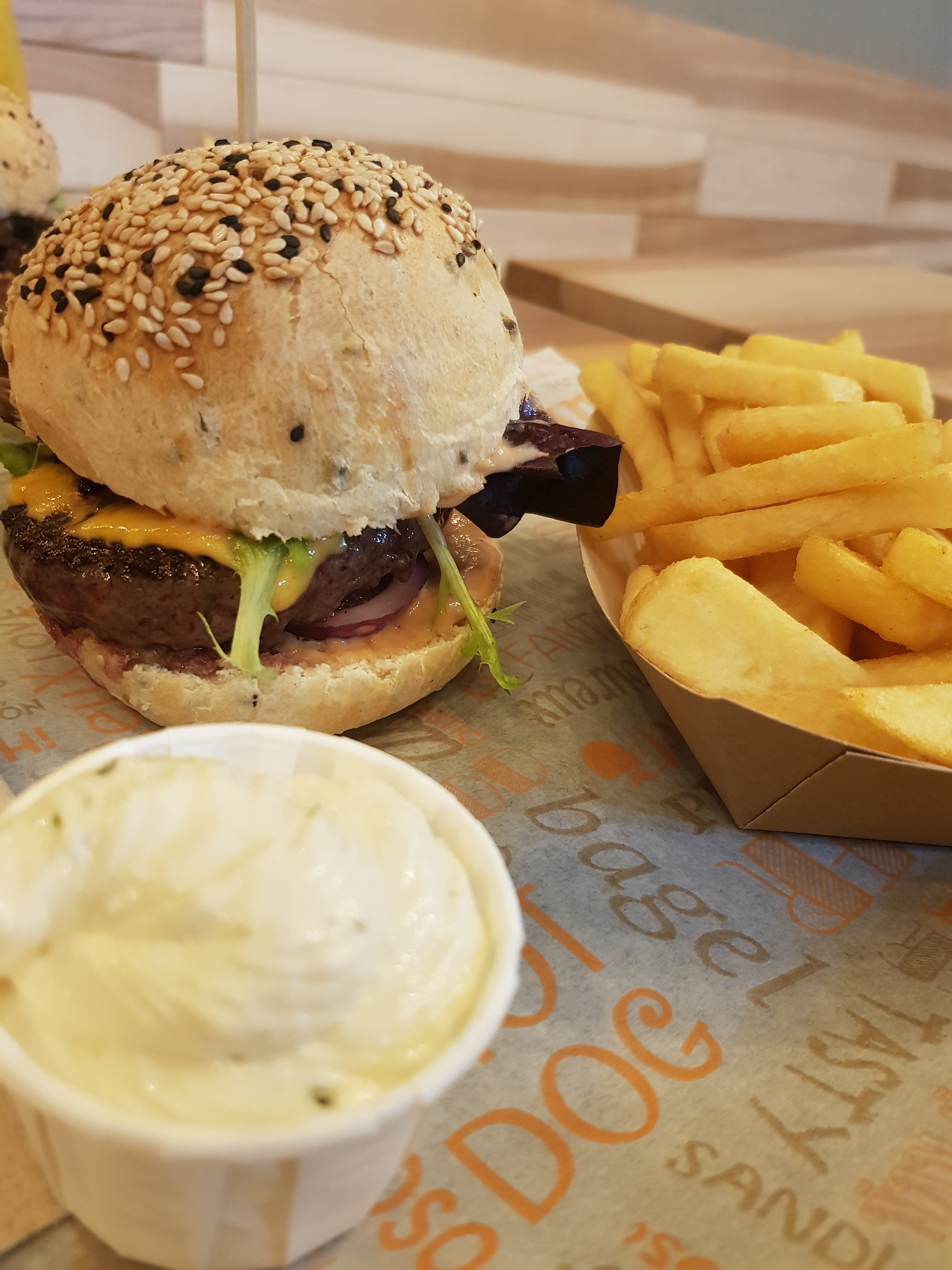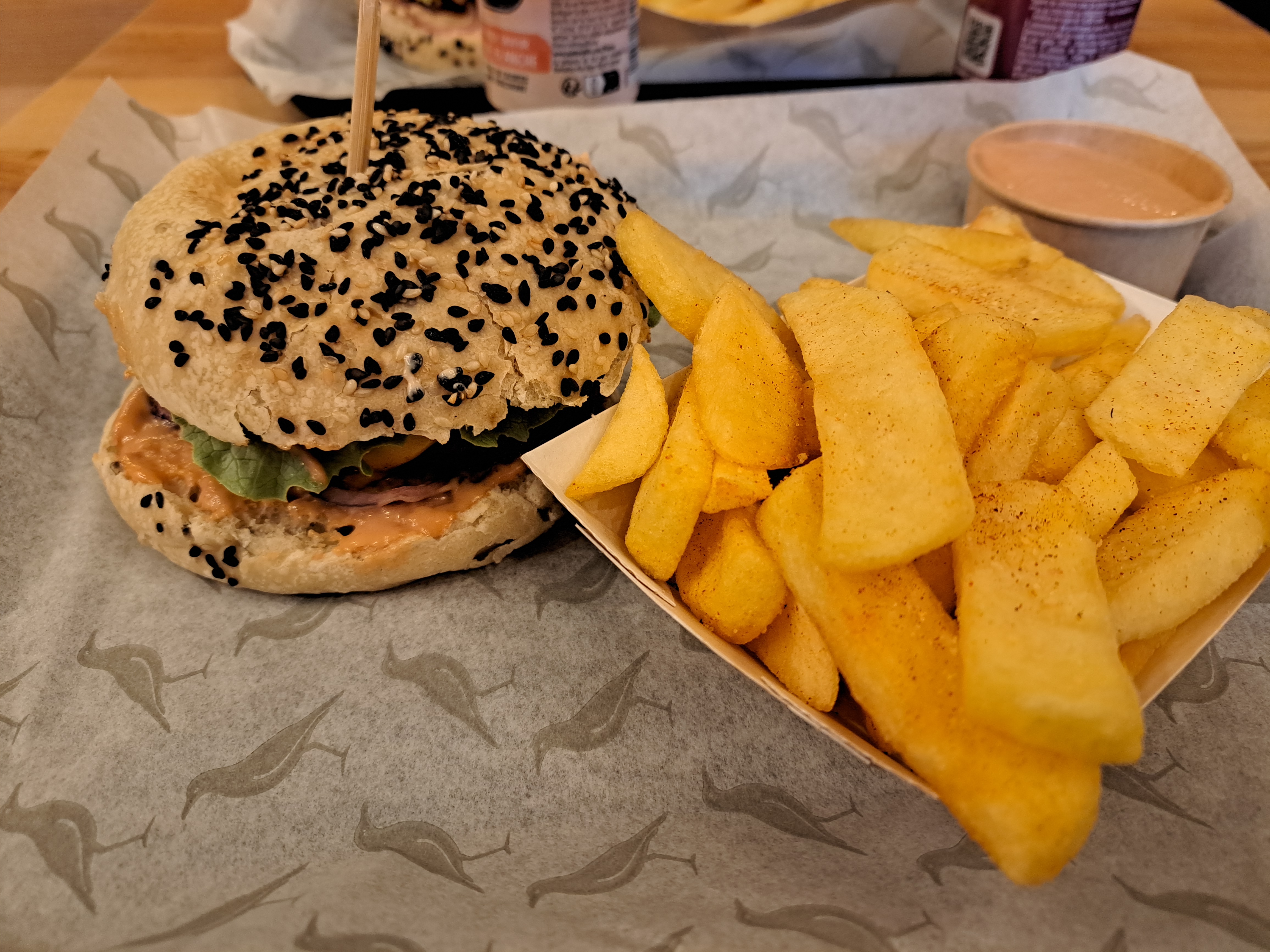 Burger très bon, j’ai beaucoup aimé le pain au sesame, les frites au paprika étaient bonnes, les sauces sont faites maison, la qualité est au rendez-vous.