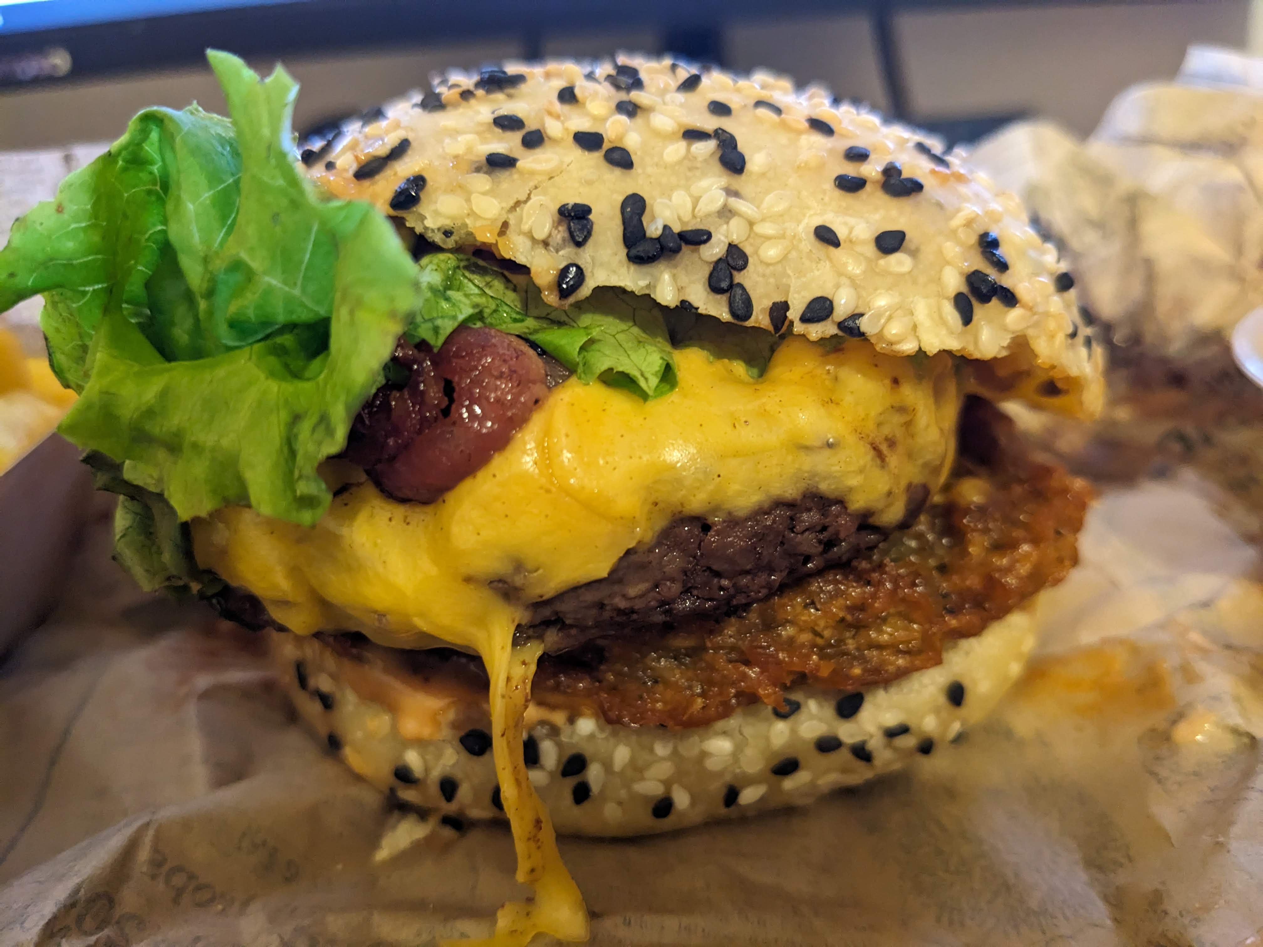 Bon burger cependant je trouve le pain un peu fin il se perd dans la viande pour un XL