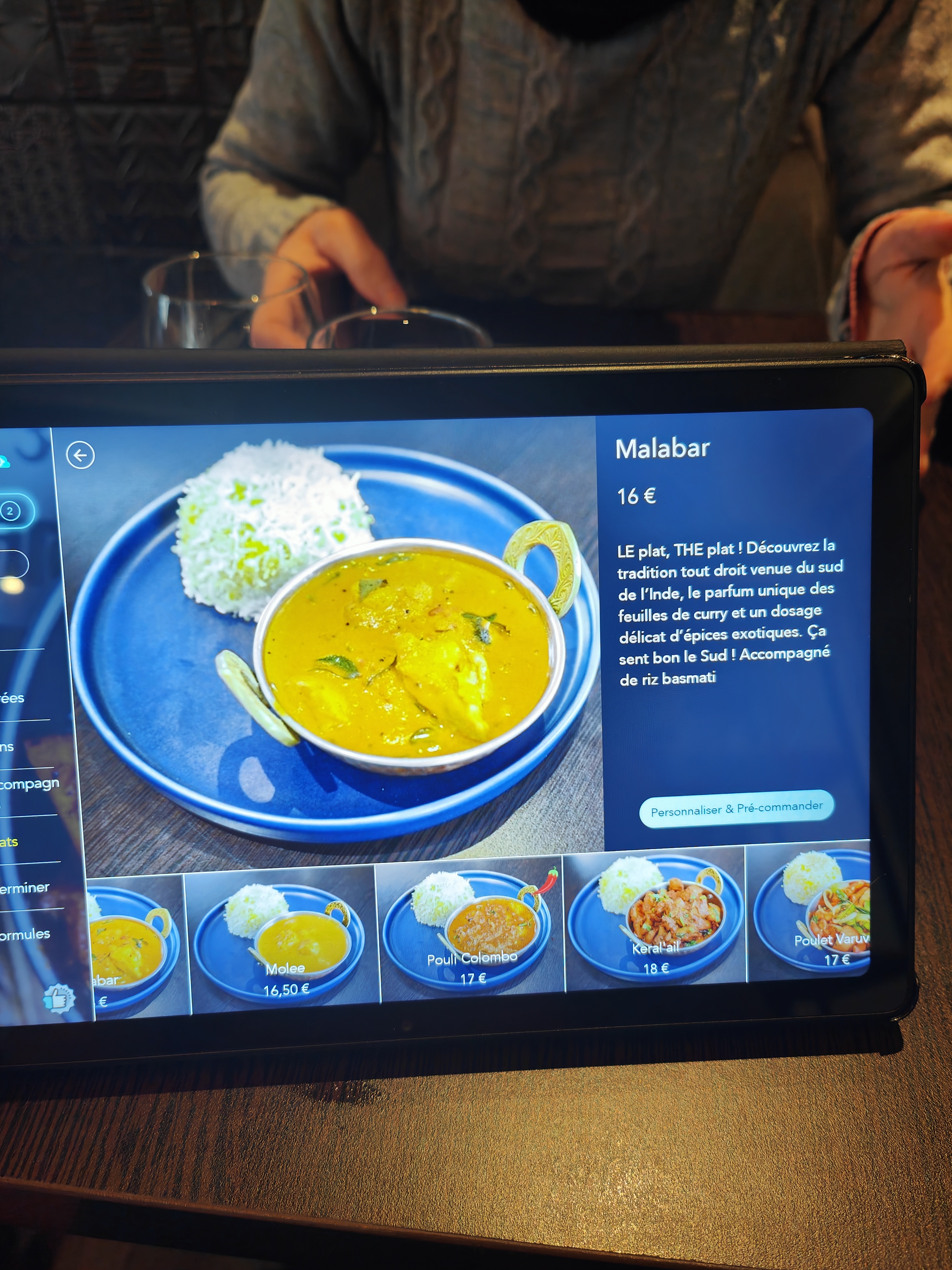 Excellent restaurant indien avec un choix de plat qui se fait sur tablette. C’est pratique, on a les photos des plats, les descriptions et la possibilité de personnalisation. J’ai bien aimé la boisson traditionnelle au yaourt et à la vanille mais pendant le repas c’est étrange, c’est bien en apéritif ou pendant le dessert. Je recommande ce restaurant, c’était très bon !