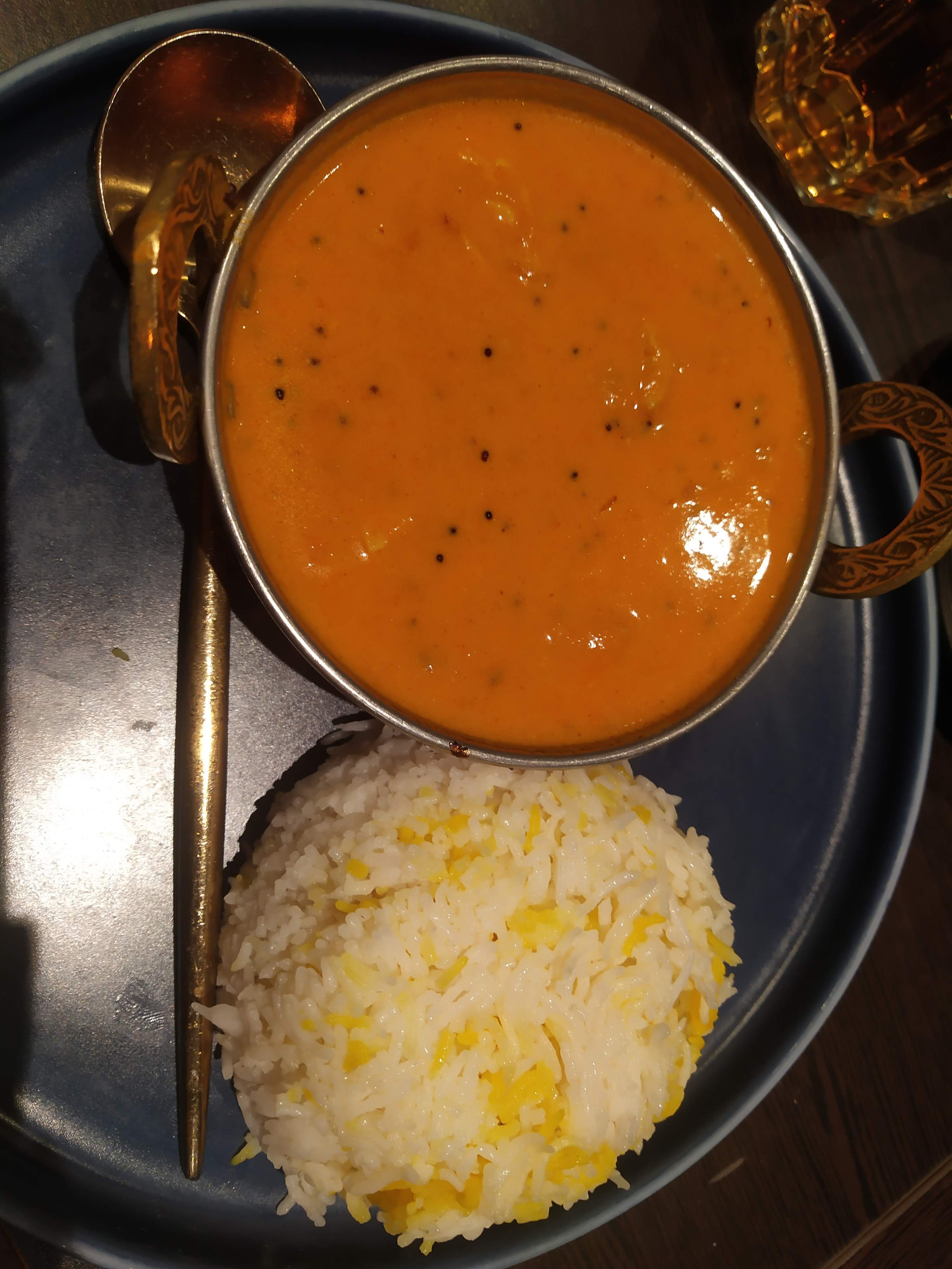 La nourriture est plutôt bonne même si la liste des produits alimentaires disponibles est inférieure à celle prévue. Comme c'est proche de chez moi, je suis venu ici plusieurs fois et je pense que les plats sont juste un peu faibles en quantité de riz mais sinon bons. Si vous voulez une solution indienne, ne cherchez pas plus loin ! Ils ont même la possibilité d'ajouter du piment vert à la nourriture pour que vous puissiez être sûr que ce n'est pas ennuyeux 😂 super trouvaille, je reviendrai ici et j'espère que l'alcool sera moins cher un jour 😊❤️❤️❤️ soyez prévenu que cela peut devenir un peu bruyant car il y a toujours du monde car on y mange très bien ! 10/10 Edit : d'accord, juste une bête noire, j'aurais aimé qu'ils nous donnent plus de papad après avoir commandé, car seulement deux pour deux personnes, c'est une quantité ridicule à manger. J'en fais juste trois pour manger seul à la maison pour le déjeuner 😂 ce n'est pas un vrai problème, j'avais juste l'impression que je devrais le mentionner au cas où cela reviendrait par rapport à la corbeille à pain d'ouverture !
