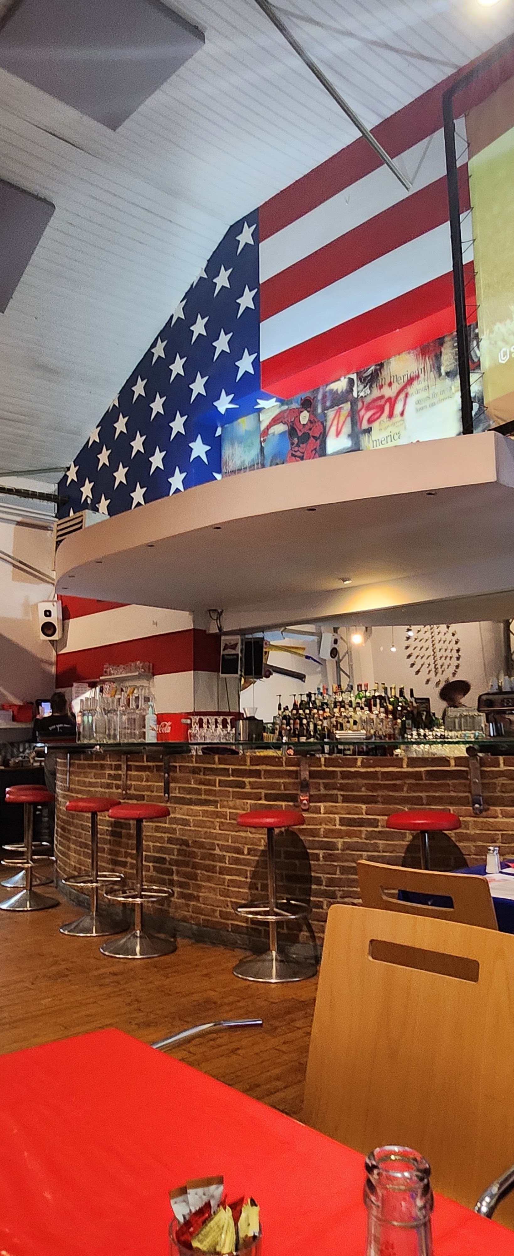 Restaurant qui tient bien son nom, autant dans la décoration que dans les plats. Avion, télé, drapeau, style américain du sol au plafond ! Service rapide, bon rapport qualité/prix vue la quantité dans les assiettes. Petit bémol, la terrasse entre la circulation et le trottoir qui peut géner certain.