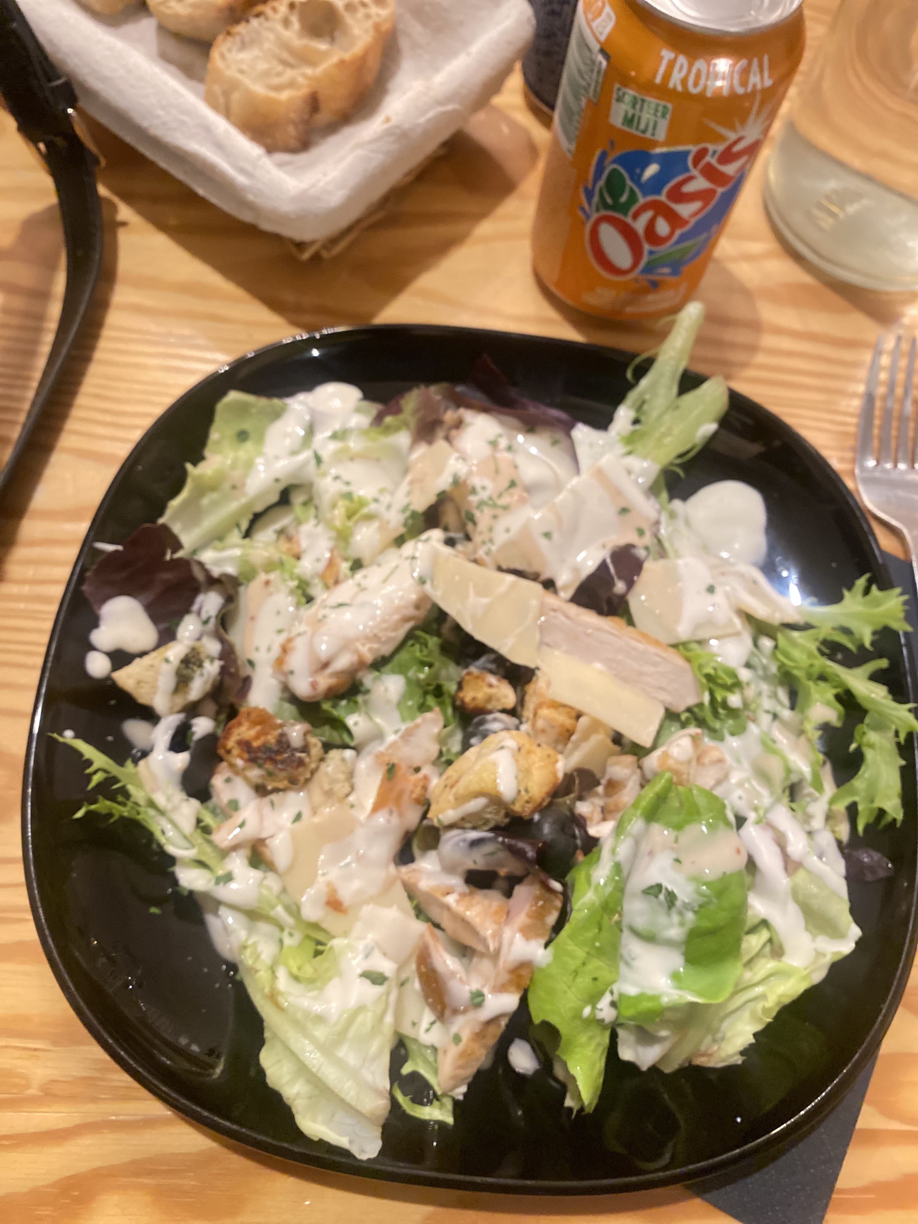 J’ai commandé une salade cesar. Je trouve inadmissible de pouvoir encore servir de la salade en sachet ( en plus bas de gamme) dans un « restaurant ». De plus une salade cesar doit respecter certaines « règles »: pas d’olives noirs, une sauce Cesar et pas une vinaigrette. La présence d’œufs. Je mets une deuxième étoile car en terme de quantité c’est vraiment pas mal. Mais franchement déçu
