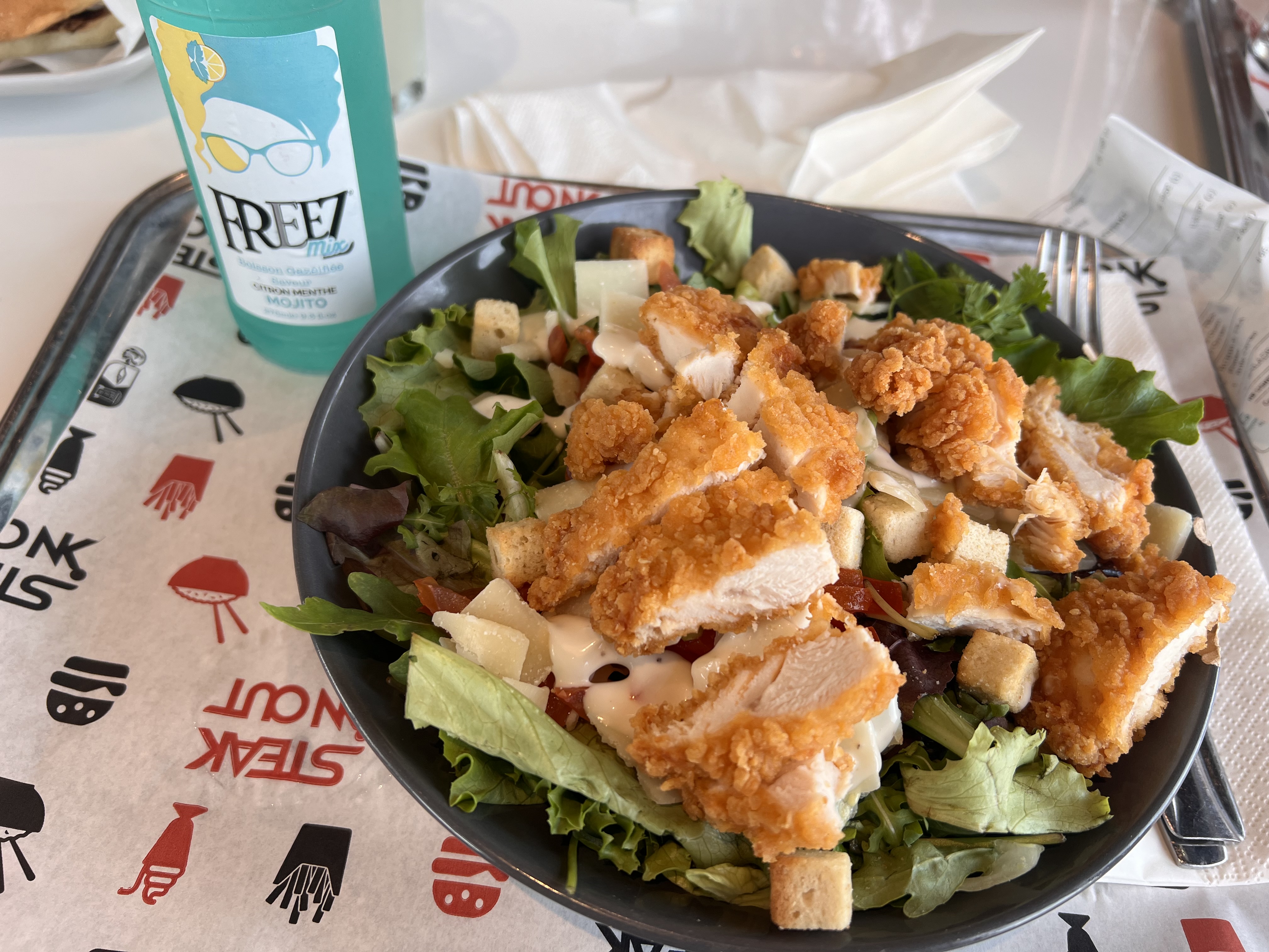 J’ai beaucoup aimé steak in out, les frites j’ai beaucoup aimé ! Le Burger de l’été aussi très sympa. Grâce à une amie j’ai pu connaître cet endroit, le personnel est aimable. J’ai moins aimé le milkshake mais ça c’est de ma faute je n’aime pas trop le chocolat quel idée d’avoir voulu tester !
