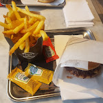 J'ai pris le Signature Steakburger et des frites avec du cheddar dessus. J'ai aimé ses petits pains moelleux du burger, c'est une brioche. Les frites sont savoureuses, elles sont faites à la main. Pour un fast food, c'est assez cher. C'est ok, juste un fast-food normal. L'endroit est bien. Vous n'y passez pas beaucoup de temps. C'est dommage qu'ils n'aient pas de terrasse.