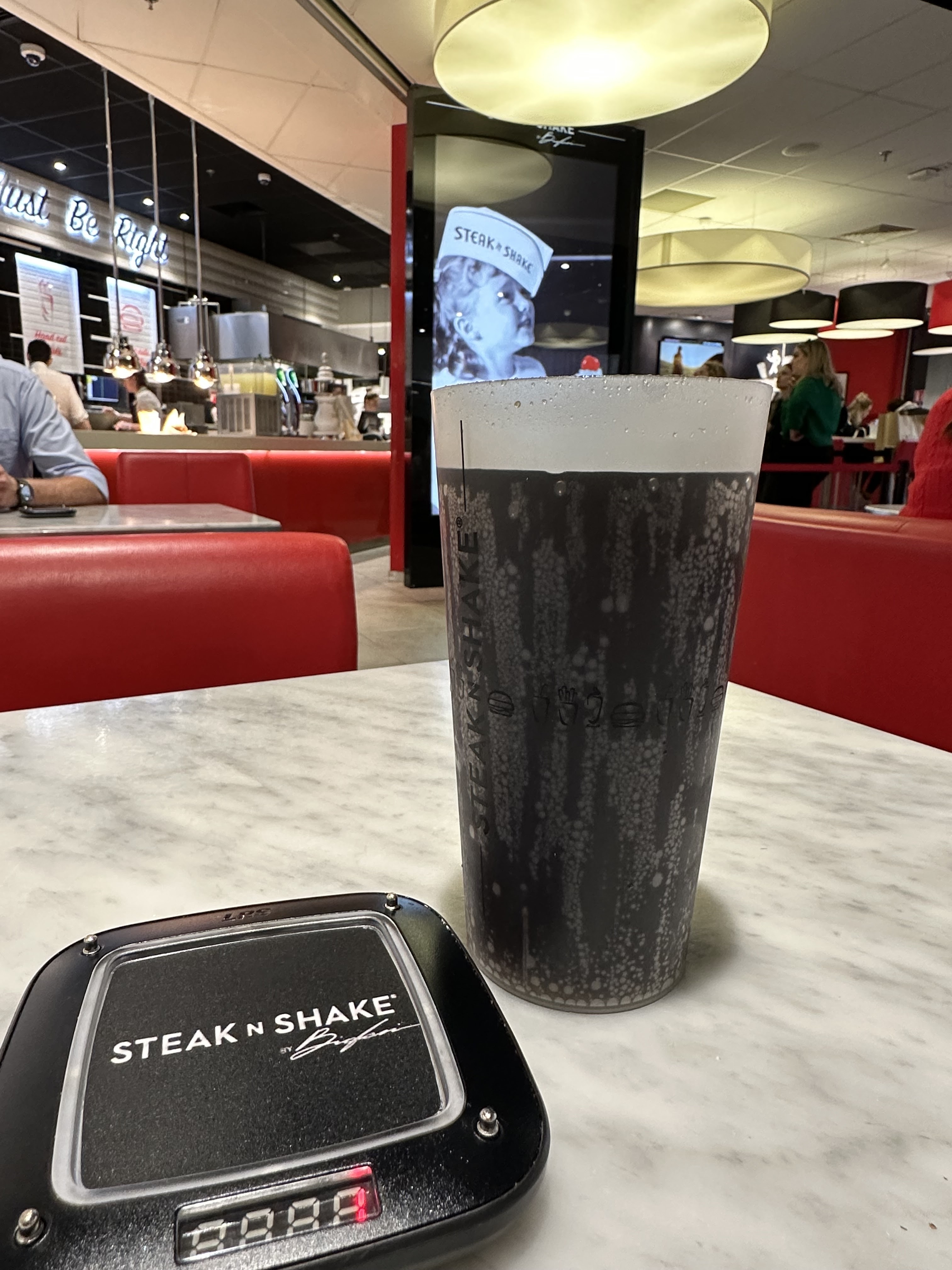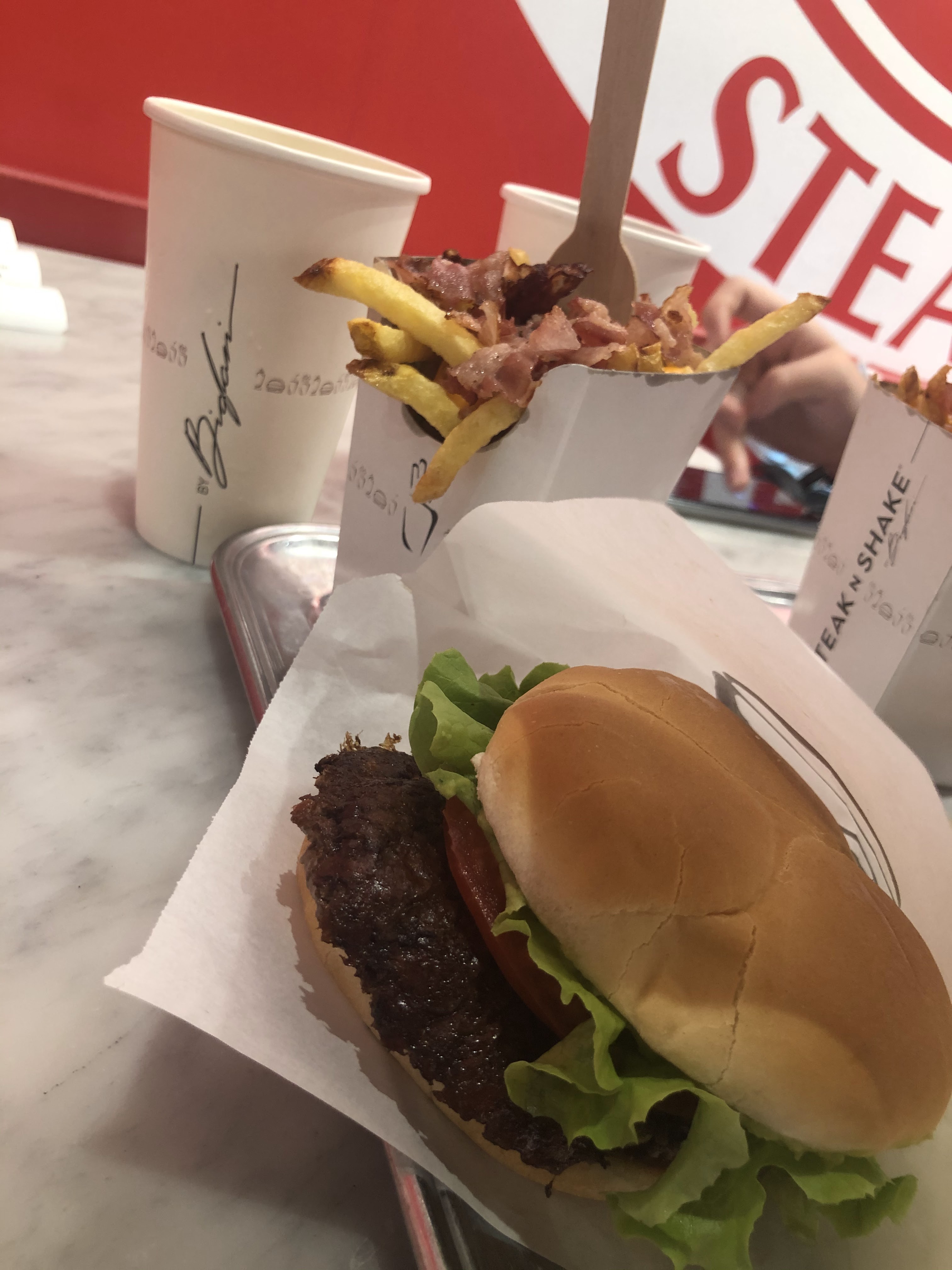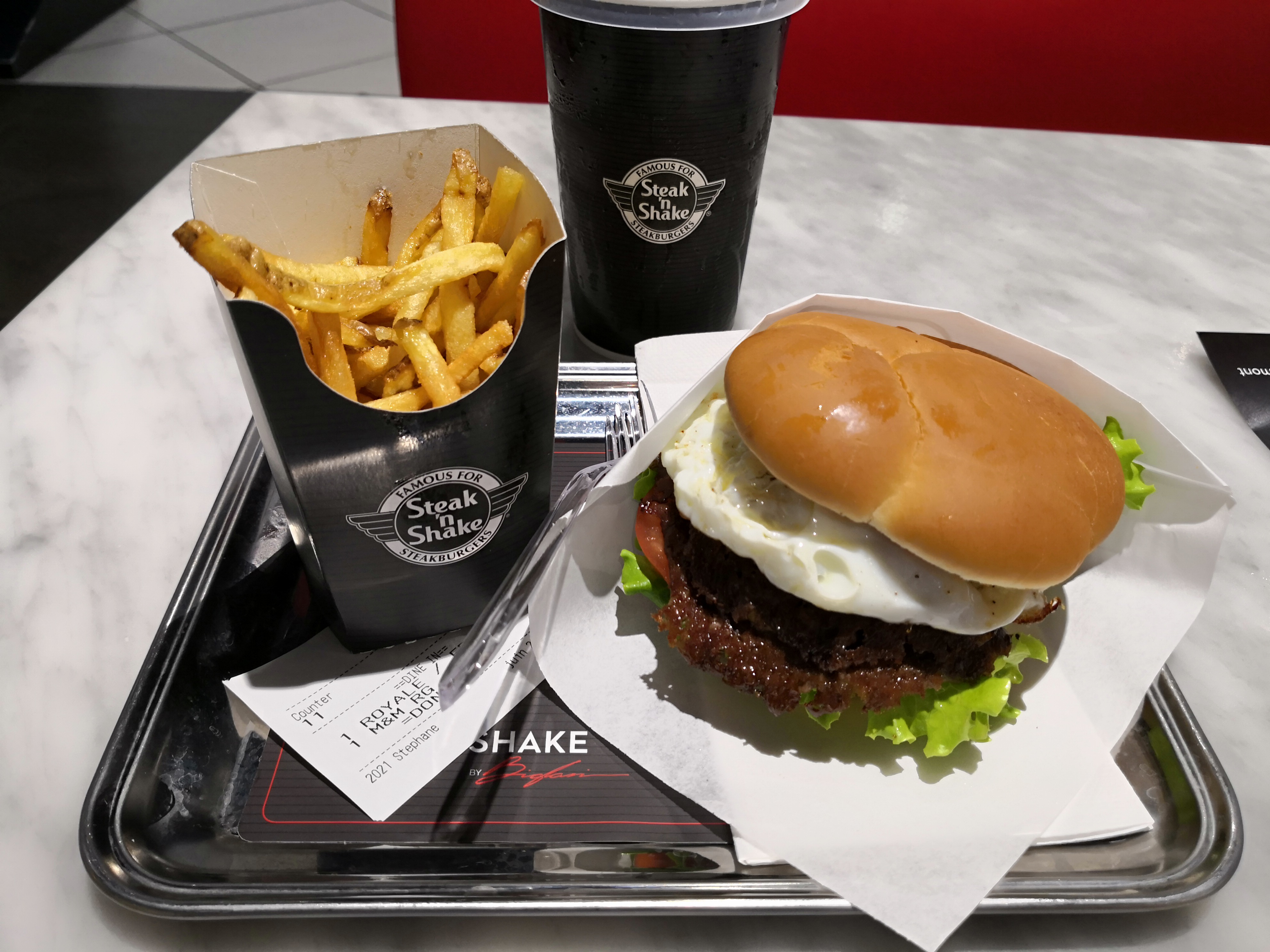 Steak N Shake ce n'est plus ce que c'était. Une grande frite ? Autant mettre le carton de la petite pour au moins donner l'impression de masse pour tromper le client. (4.50€) Les bornes modernité pas trop le choix, mais manque de place entre les bornes, serrés entre les clients. (Manque de bornes et d'espace entre elles). Deuxième partie de salle fermé un week-end, vraiment déçu pour le prix du service globale par rapport à l'ancien service.