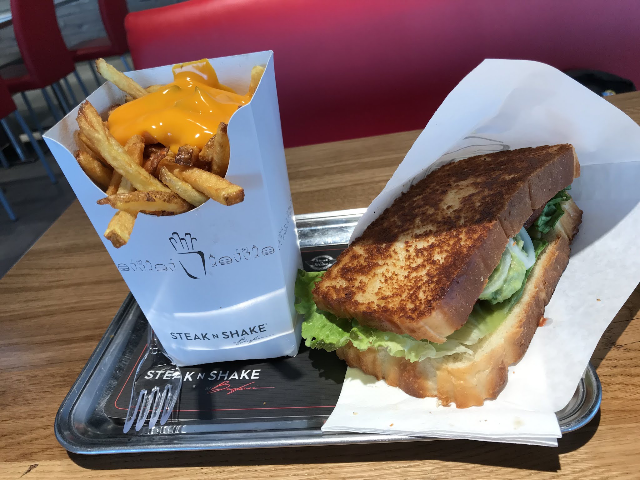 Lors de ma « première fois » à steak and Shake j’ai commandé en drive c’était assez rapide et les Burgers ainsi que les frites étaient délicieuses et bien copieux. J’y suis alors retournée un jour vers 15:00~16:00 pour commander un milkshake le personnel a été très très lent environ 20 minutes pour prendre la commande et faire le milkshake alors qu’il n’y avait qu’une personne devant moi. Le milkshake vanille cependant était bon mais très sucré.