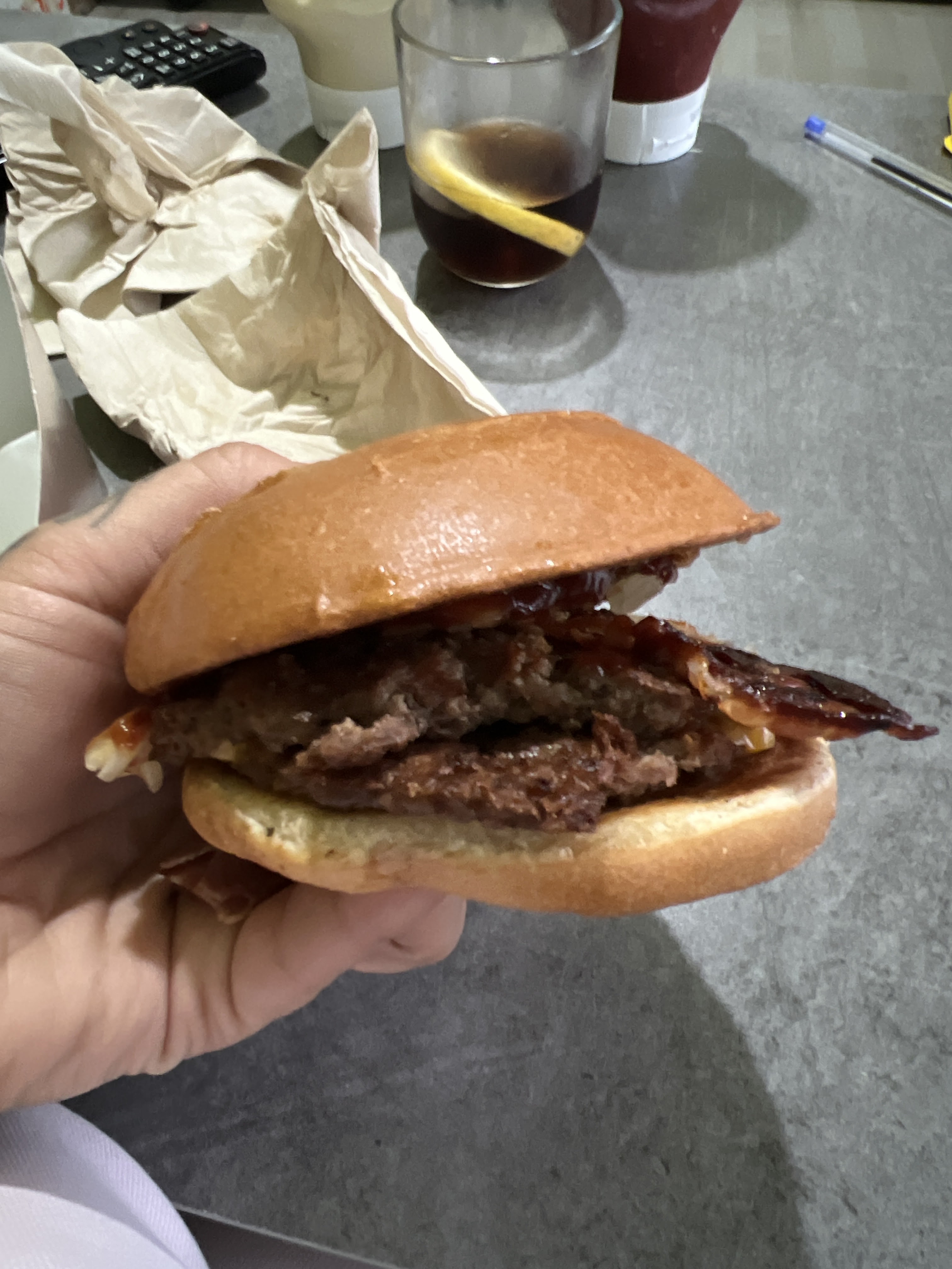 Déçue par les Burgers. Nous avions commandé un triple bacon et un double bacon, les 2 Burgers étaient vraiment petits et les steaks également (moins de 30g le steak) Le pain est trop industriel et les frites molles et écrasées… Mieux vaut aller chez Mac do