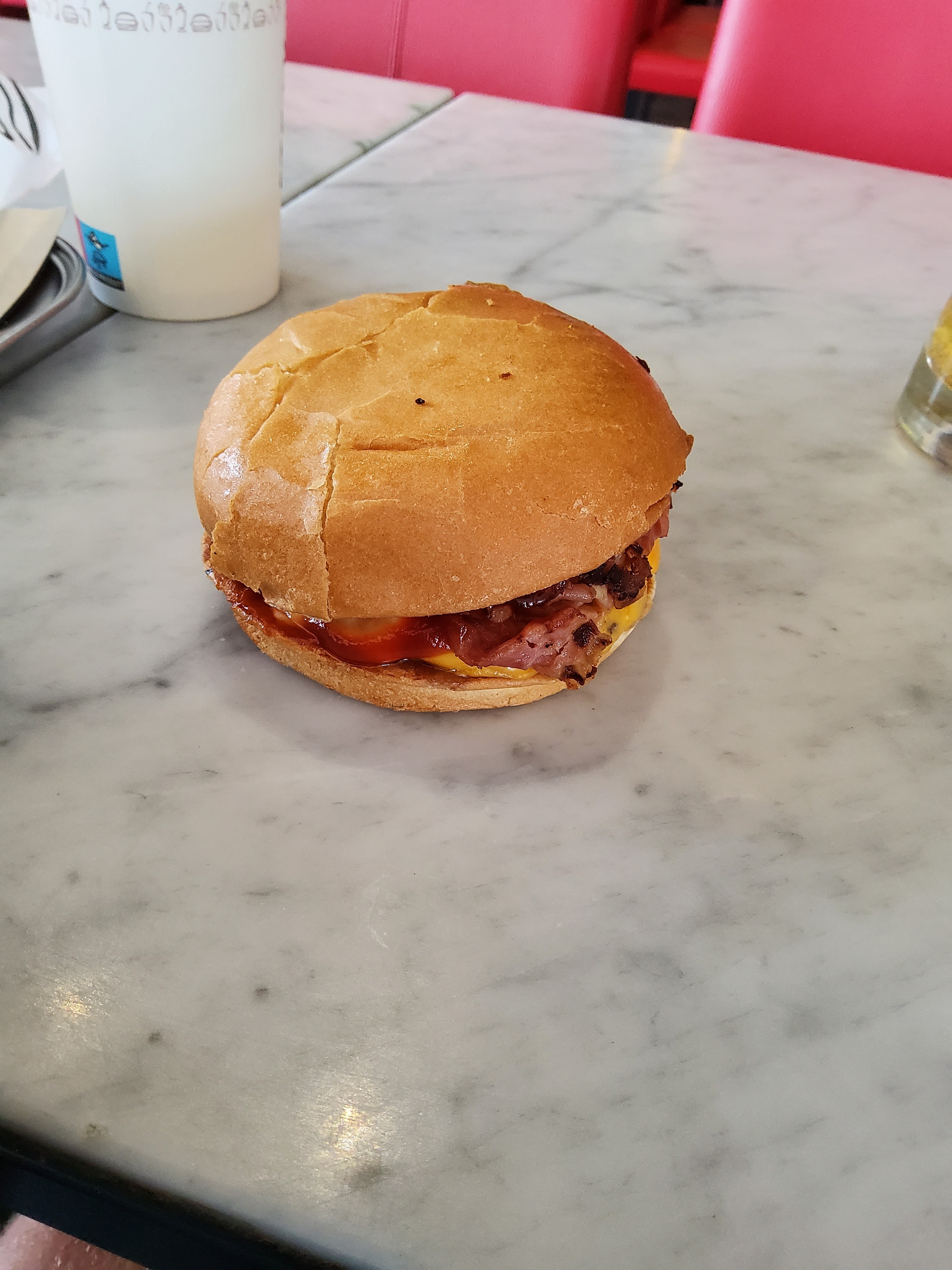 Lieu assez froid niveau déco, personnel correct, sans sourire, et qui n'explique pas comment fonctionne le bipper... ( Je ne connaissais pas ce système) Tables propres. Les milkshakes sont bons et copieux . Je vais revenir pour goûter les burgers