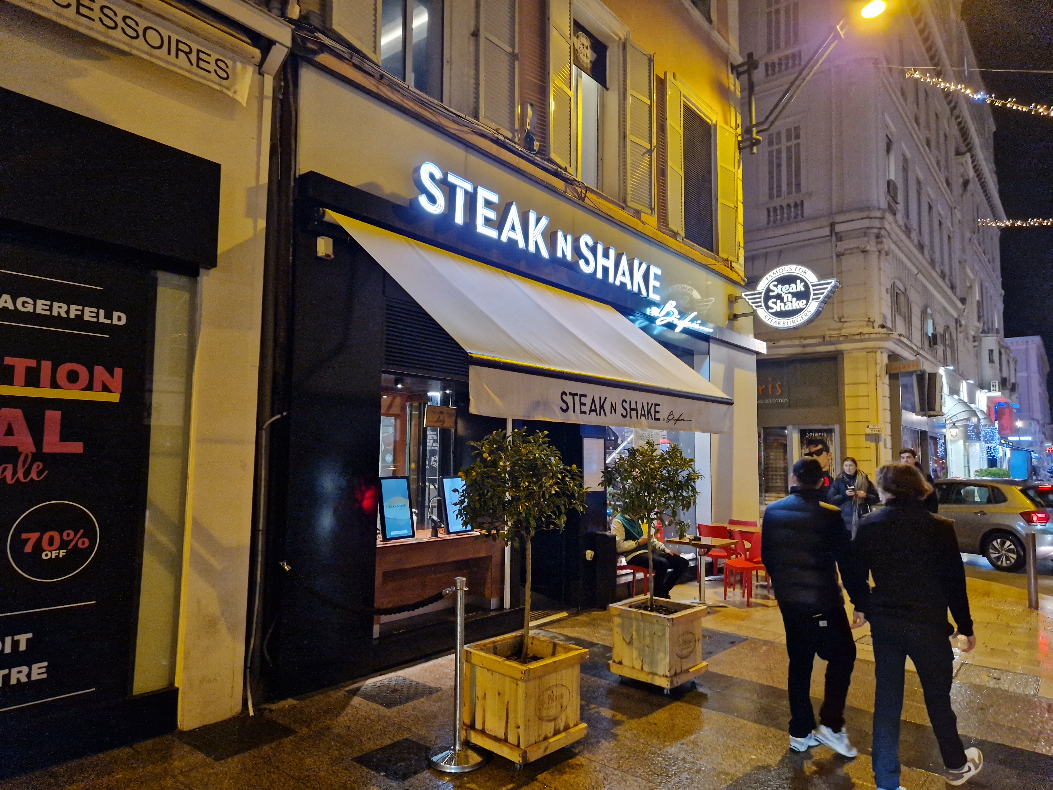 Steak ‘n Shake est sûrement l’un des meilleurs fast food de Cannes, les burgers sont super et les frites sont magnifiques. Malheureusement, l’organisation du Steak ‘n Shake de cannes n’est pas a la hauteur de la chaîne, les machines à carte ne fonctionne pas, 20 min d’attende pour ma commande, le service de boissons qui ne cesse de disfonctionner. En bref, le restaurant est bon mais l’organisation est à revoir, dommage !!!